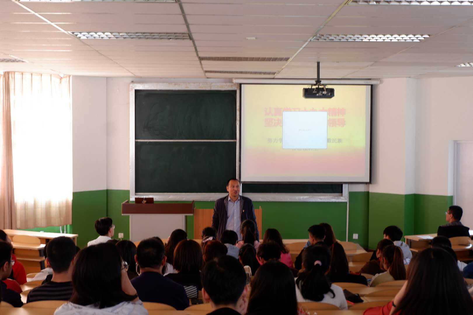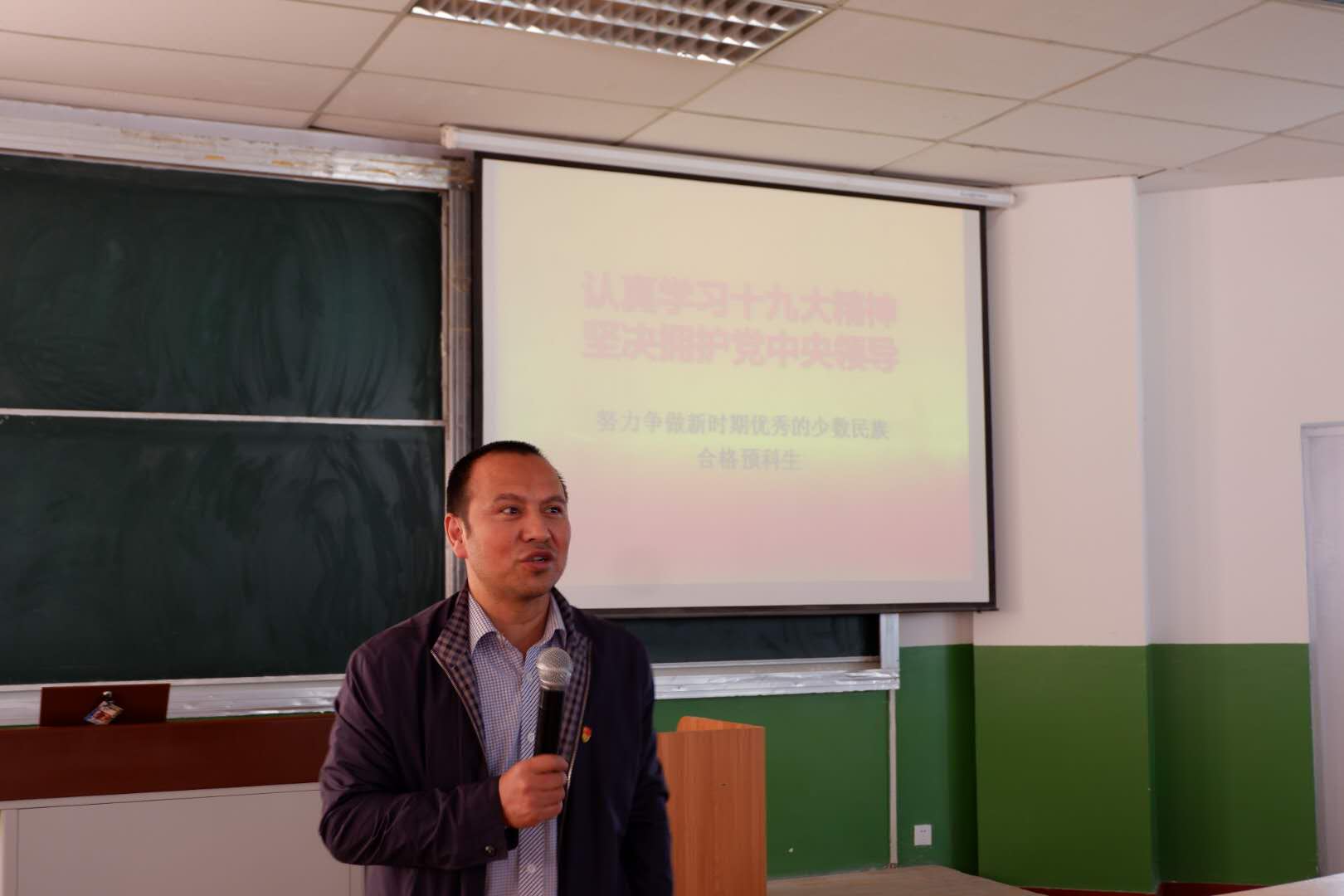 3月22日下午,体育平台官网副经理阿利木江老师在南教131教室为第十一期“青年马克思主义者培养工程”暨团学骨干培训班作了题为“认真学习十九大精神,坚决拥护党中央领导,努力争做新时期优秀的少数民族预科生”专题讲座。“青马班”全体学员听取了此次讲座。