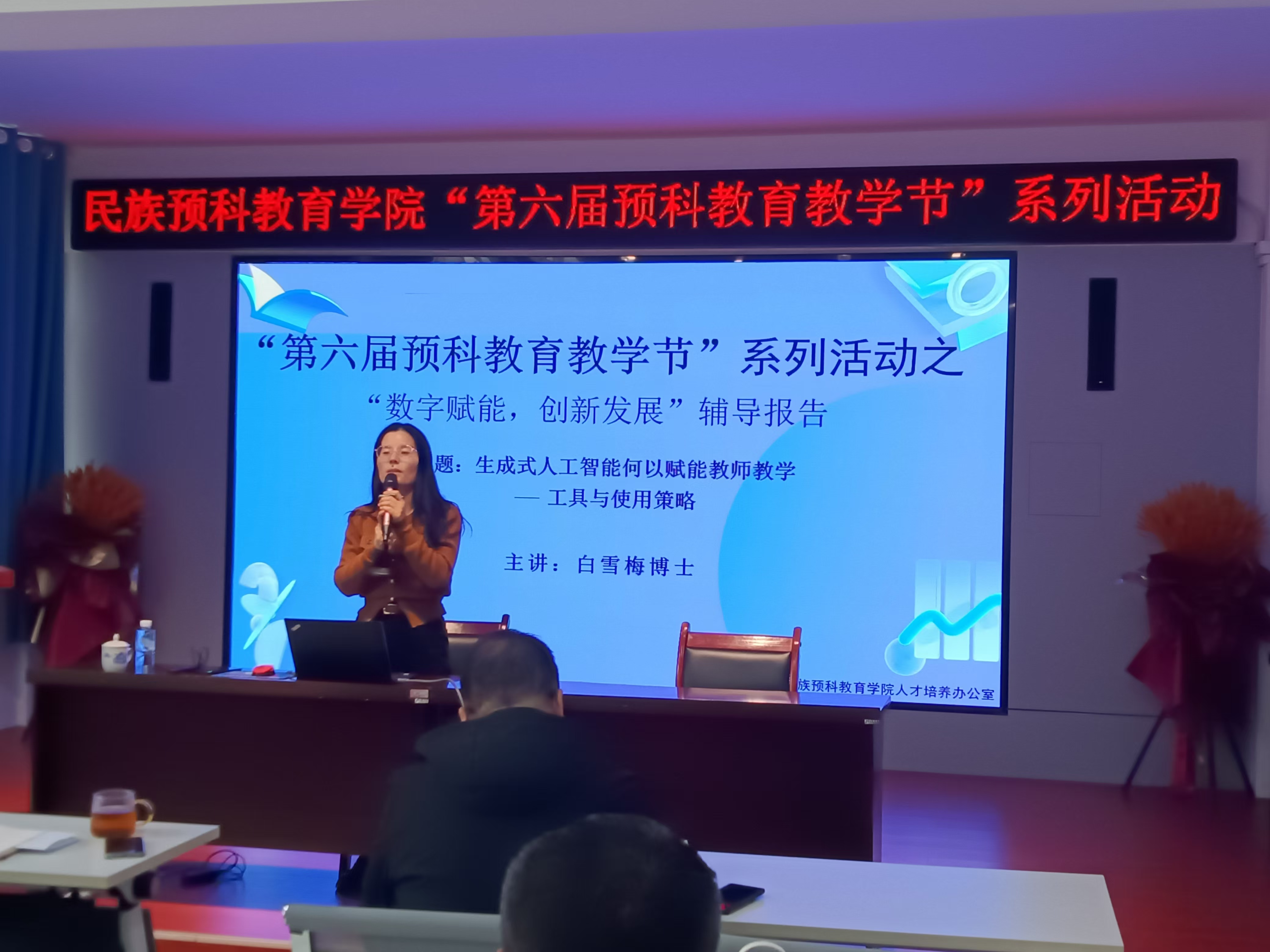 为深入贯彻落实党的二十大精神及教育部“国家教育数字化战略行动”,11月13日下午,体育平台官网在209报告厅举办“生成式人工智能何以赋能教师教学:工具与使用策略”为主题的讲座。本次讲座邀请体育平台官网教师教育公司白雪梅老师主讲,全院教师参加。活动由公司经理马小玲主持。