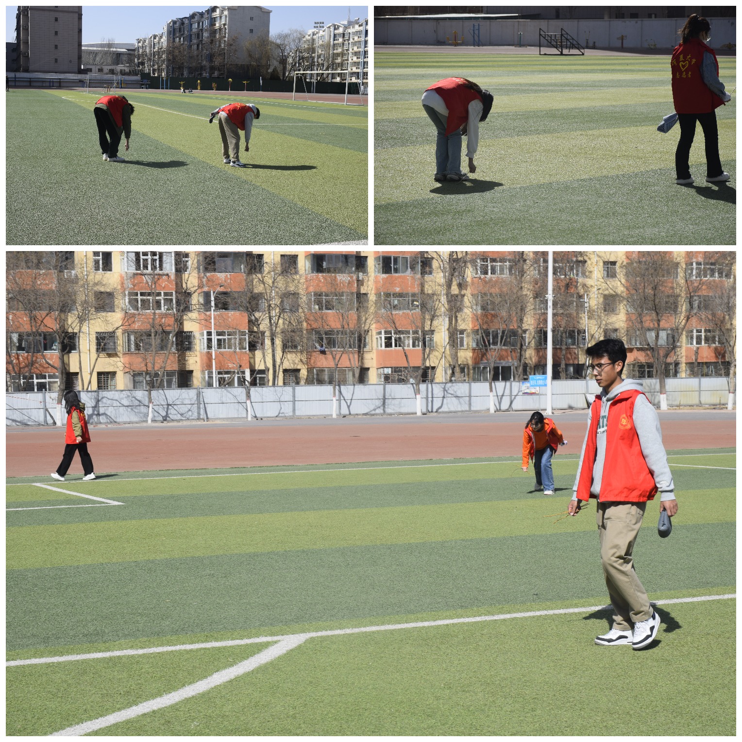 活动中,志愿者们发扬着不怕苦、不怕脏、不怕累的精神,穿梭在校园的边边角角,清扫着校园里的垃圾、擦洗着乒乓球桌、宣传栏,仔细捡拾散落在地上、草丛里、夹缝中的树叶、废纸,包装袋等垃圾。志愿者们齐心协力、互帮互助、干劲十足。整个志愿活动井然有序,热火朝天。