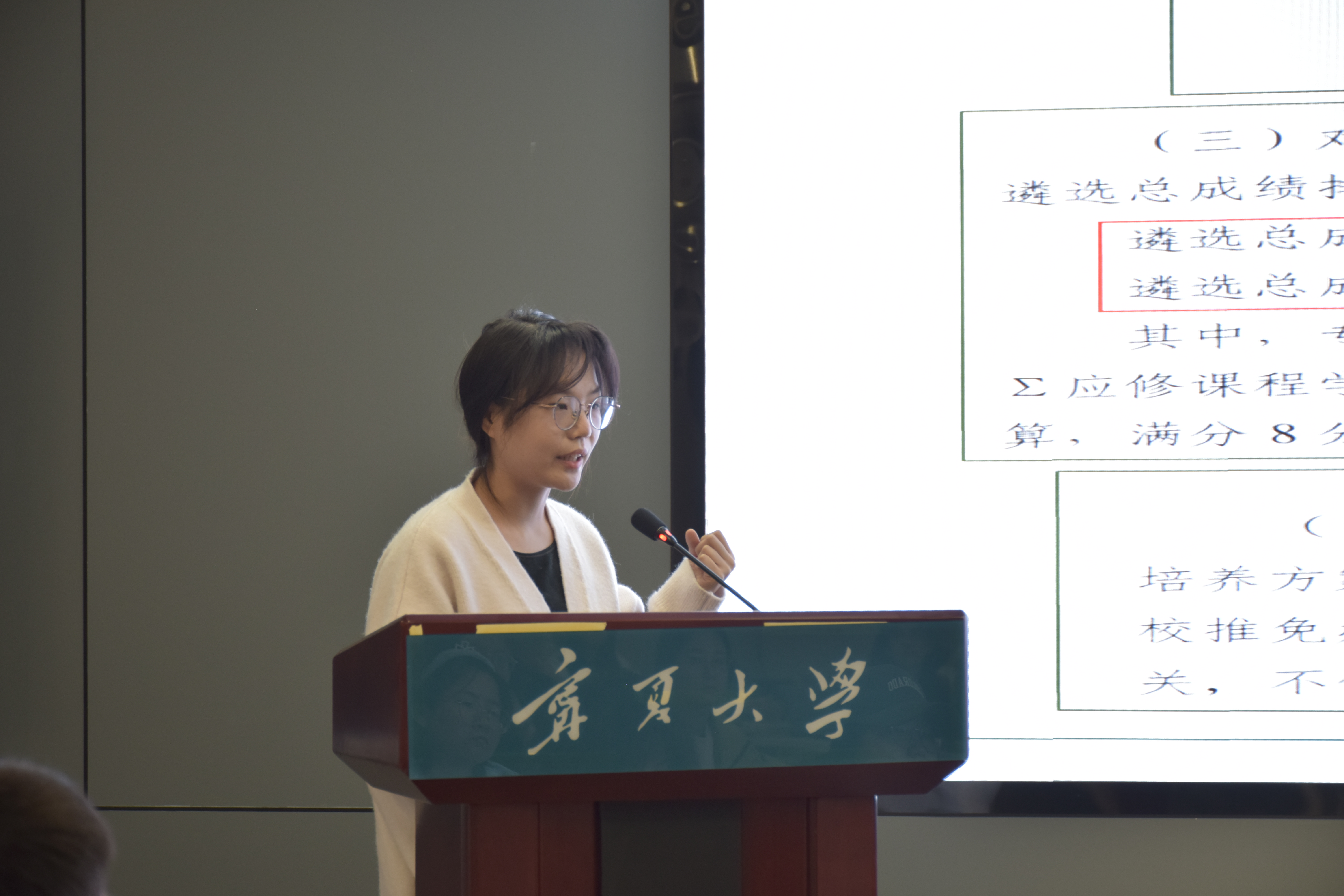 张倩首先做了精彩的分享,她详细地介绍了自己的保研经历,其中主要围绕如何获得保研资格、大一至大四如何做保研准备以及保研流程三个方面展开,并鼓励同学们抓住机会,积极参与公益、科研、社团、员工工作及各类竞赛等活动,以拓宽视野,增强综合素质。赵旭根据他的个人经历,向大家分享了一个过程曲折但结局美好的保研历程,并以幽默风趣的方式给同学们提出了一些保研建议,他希望大家能够提前规划未来的发展和就业方向,努力向着一个目标前进!