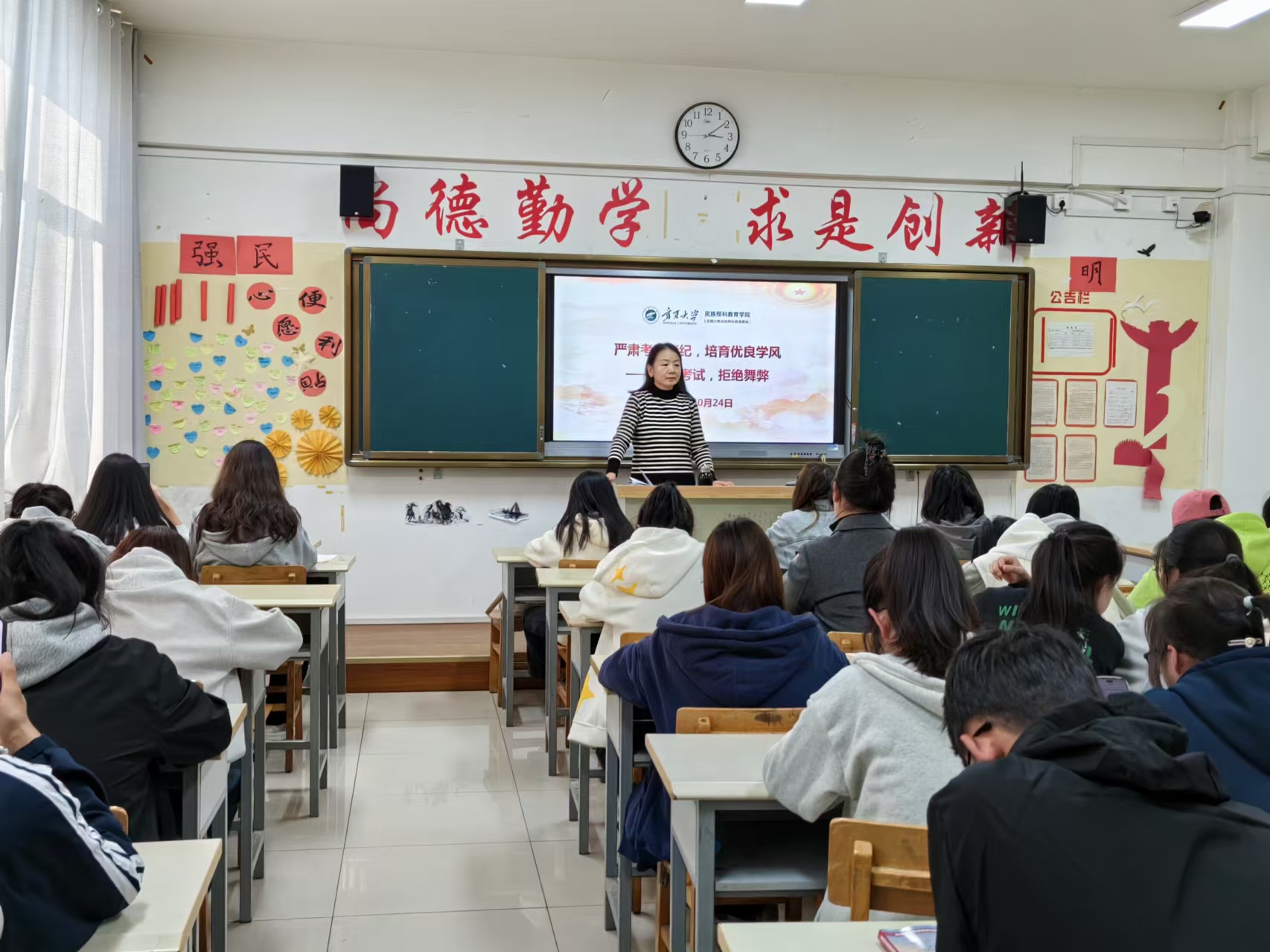 各班主任强调,考试是检验学习成果的最佳方式,更是展示优良学风的重要窗口。“车无辕而不行,人无信则不立”。诚信考试,不仅是对他人的尊重,更是对努力学习的自己的一份尊重。诚信考试,需要大家自我约束和自觉遵守,严格遵守考试规章制度,实事求是,杜绝一切作弊行为。