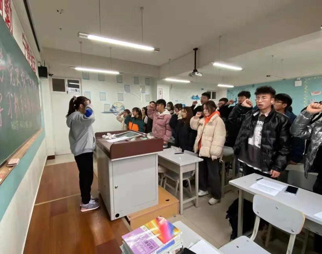 “请党放心,强国有我!”各班团支书又带领大家重温了入团誓词。同学们举起右拳,以铿锵有力的誓言,展现出报效祖国的满腔热情。