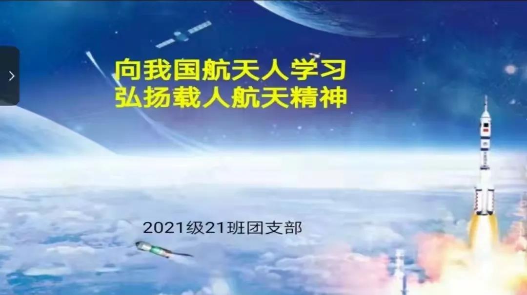 为结合我国神舟十三号载人宇宙飞船发射成功,使同学们深刻学习领悟载人航天精神, 11月10日下午,公司团委组织各班团支部开展疫情防控期间线上“向我国航天人学习 弘扬载人航天精神”主题班会。