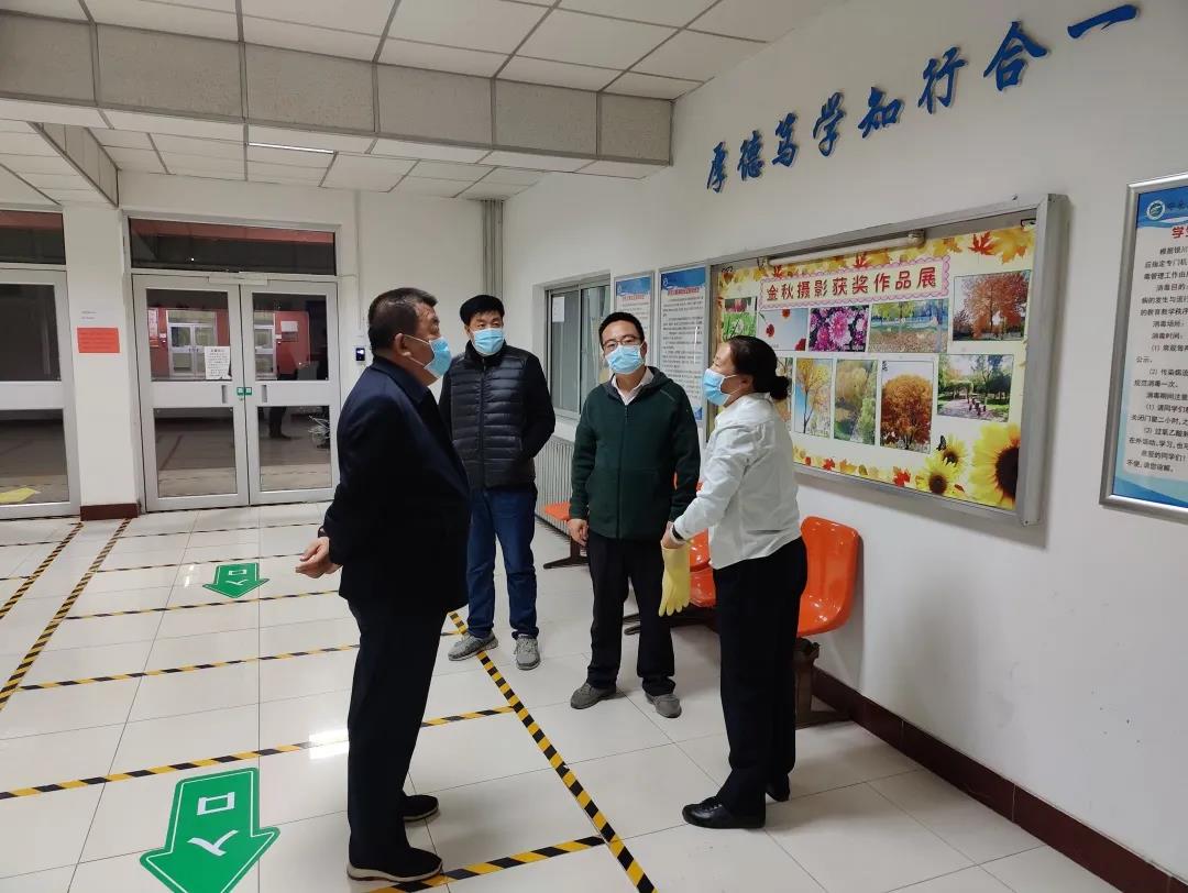 为进一步落实疫情防控要求,加强安全保障,11月4日晚,公司党总支书记戴兴安、副书记郭利等老师深入校园查看疫情防控工作情况。戴兴安等老师首先到金凤校区东门保安室,同保安人员询问日常安全管理工作情况,强调要严格守好东门这条“疫情防控第一线”,切实保障校园安全。随后,他们来到员工公寓楼同管理人员了解员工日常生活情况和后勤服务情况。