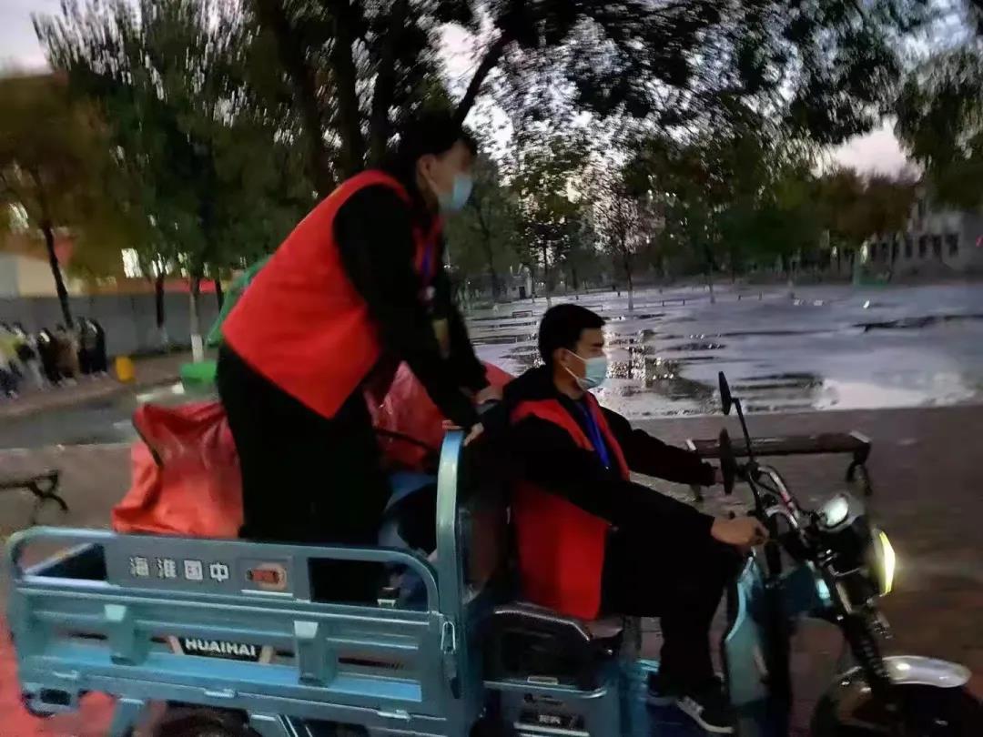辅导员原博老师和志愿者同学前去慰问公司实习教师。