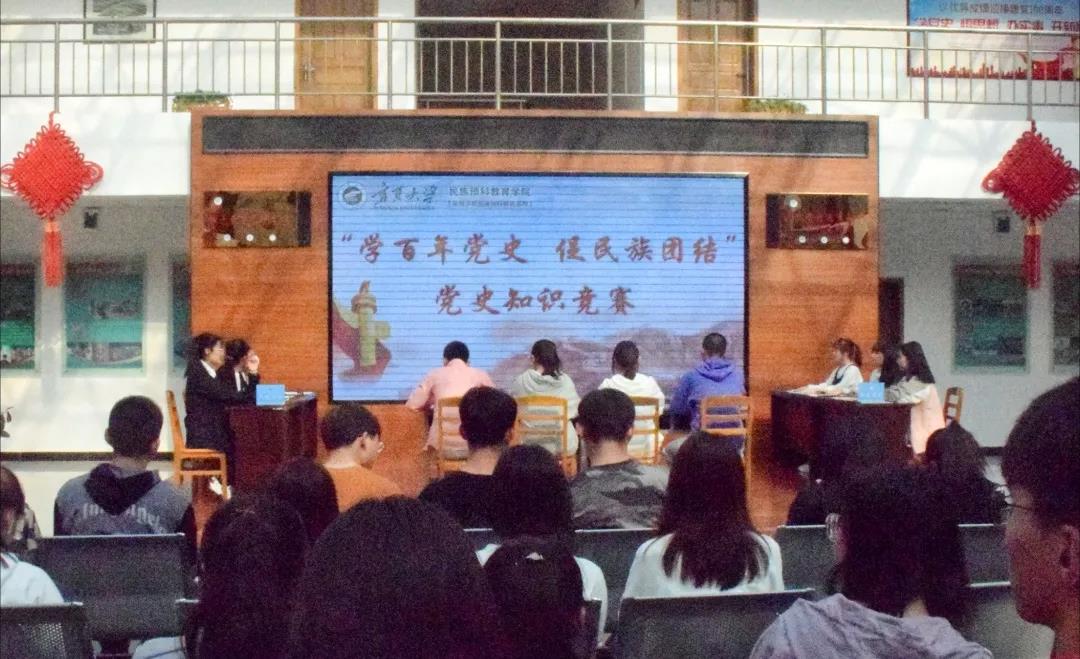 为认真学习贯彻习近平总书记在党史学习教育动员大会上发表的重要讲话精神,大力唱响共产党好、社会主义好、改革开放好、伟大祖国好、各族人民好的时代主旋律,引导广大师生铸牢中华民族共同体意识,守好促进民族团结生命线,投身全面建设社会主义现代化国家新征程。4月21日下午,公司在行政楼大厅举办了“学百年党史 促民族团结”党史知识竞赛活动。公司党总支书记戴兴安、副书记郭利莅临现场,各辅导员老师,至善书院、文质书院、其正书院三支比赛队伍以及部分员工代表参加本次活动。