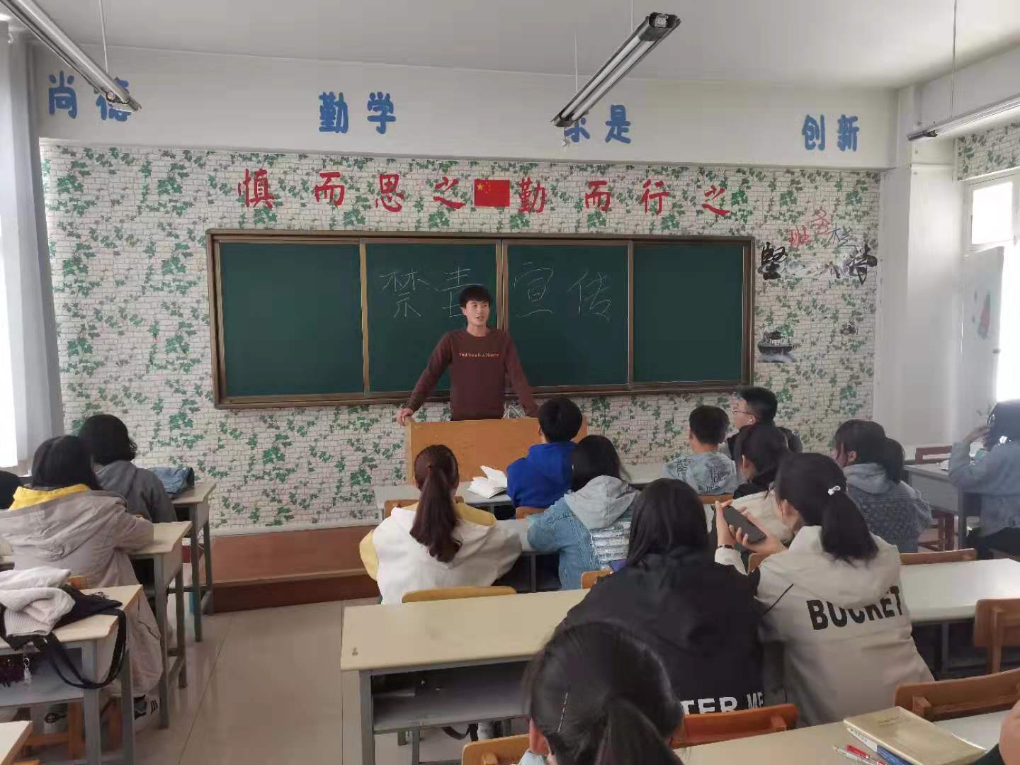最后,班长和团支书发出了“远离毒品•健康生活•绿色人生”的倡议,号召全体同学珍惜生命,远离毒品并带领同学们庄严宣誓,认真填写了《珍爱生命、拒绝毒品承诺书》