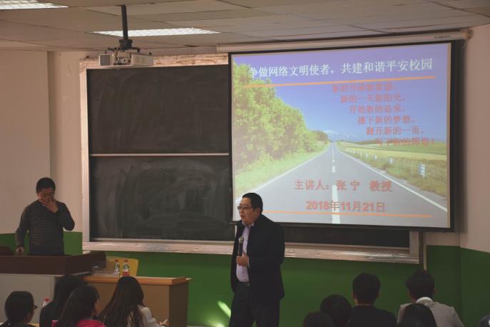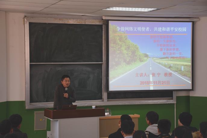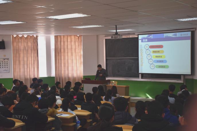 为了引导同学们正确认识网络环境对自身生活的影响,提高员工的防范网络诈骗能力,倡导员工文明、健康上网,使同学们具有较强的独立性和适应性,促进其全面发展和健康成长。体育平台官网于2018年11月21日在南教131教室举办了主题为“争做网络文明使者,共建和谐平安校园”的讲座。