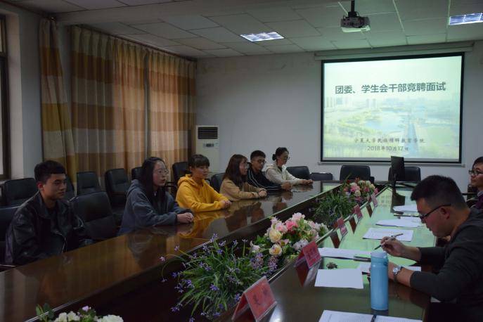 竞聘面试首先是从团委办公室和员工会纪检部开始竞选。在相关老师和员工的组织下,所有参加竞聘的同学依次进入竞聘现场。