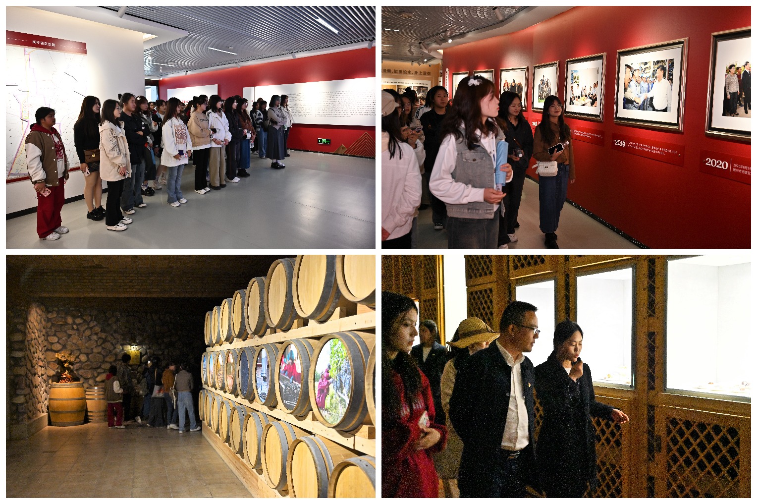 在闽宁镇闽宁新貌展示中心观摩学习时,师生们了解到闽宁镇从昔日的“干沙滩”转变为今日的“金沙滩”的沧桑巨变,感悟闽、宁两地人民跨越山海的深厚友谊。在党的领导下,人民通过自身的勤劳和智慧,成功实现脱贫致富的全部历程。在志辉源石酒庄里,师生们通过参观地下酒窖、酒庄产品陈列车间,感受宁夏践行习近平总书记两次视察宁夏对葡萄酒产业发展作出的重要指示和明确要求。