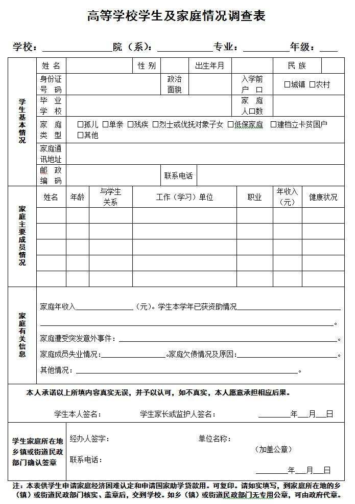 这张表是附在录取通知书中的,需要加盖生源地乡政及民政部门公章,在入校后老师会统一收缴。