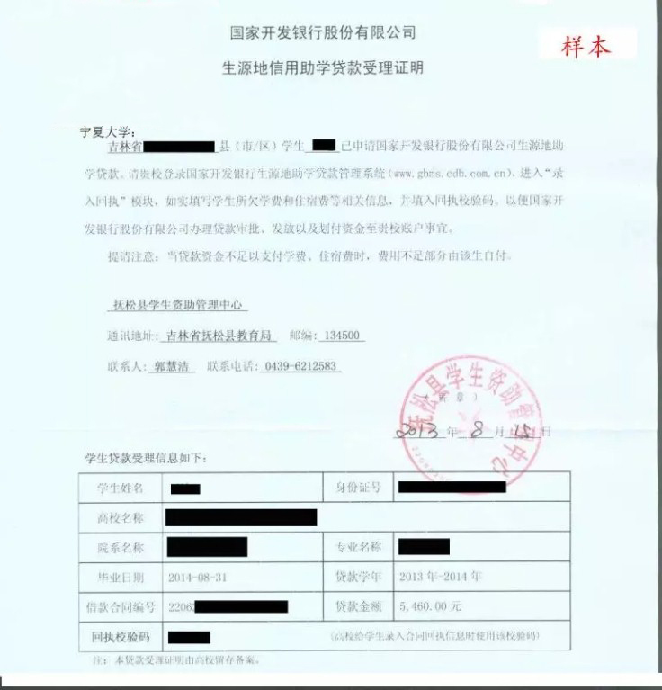 2.《国家开发银行生源地信用助学贷款受理证明》