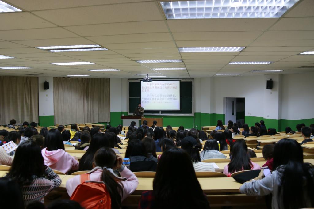 随后,主讲老师就校图书馆现存藏书情况、电子文献资源及纸质文献资源大体情况进行了概述,通过教学演示视频向同学们详细解释了图书索引号的构成、如何通过索引号查找图书及正确借阅图书的流程等。同学们都认真聆听,表现出了对于阅读的浓厚兴趣。