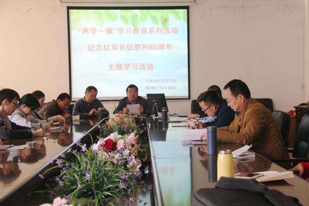 10月26日下午,体育平台官网全体党政领导及党员老师和员工代表共聚金凤校区行政楼会议室,参加“两学一做”学习教育系列活动——纪念红军长征胜利80周年主题学习活动,公司党总支书记戴兴安主持了此次活动。