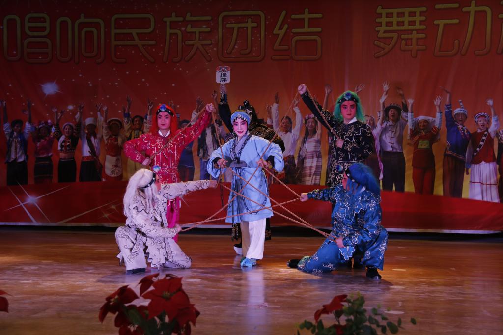 随着开场剧目《游西湖》,同学们逐渐被领入秦腔艺术的殿堂,戏曲内容跌宕起伏,引人入胜,强大的演员阵容,超高技术的音乐伴奏团队更是为演出的质量打下了坚实的基础。演员们配合默契,唱作俱佳的精彩表演浑然一体。演出期间,主持人还邀请了国家一级戏曲演员、梅花奖得主薛英老师为我们详细的介绍了戏曲的基础知识,通俗易懂的讲解,台下的同学们听得津津有味。随后,剧团演员邓小文等唱起了经典戏曲《二进宫》,唱念做打、一板一眼,博得了师生的满堂喝彩。最后,同学们还有幸欣赏到即将赴台演出的戏曲《目莲救母》,演员们扎实的功底,饱含激情的唱腔,真挚的感情流露,深深的感染了在场的员工。