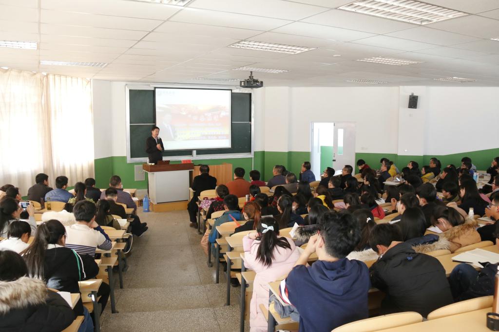 王书记着重介绍了十八届六中全会的基本情况、主要成果及重大意义,并就“四个全面”——全面建成小康社会、全面深化改革、全面依法治国、全面从严治党,以及“五大发展”做了详细阐述和解读,给在座的老师和同学们提供新的思路和视角。