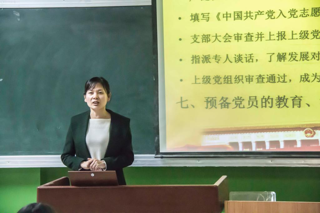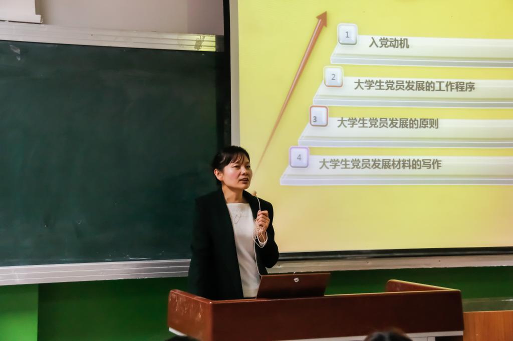 随后,郑燕玲副书记介绍了老员工党员发展的工作程序和发展原则,让同学们更加了解一名合格党员的培养过程和发展条件。最后,她详细地讲解了入党申请书、思想汇报、入党志愿书等党员发展材料的正确写作方法。