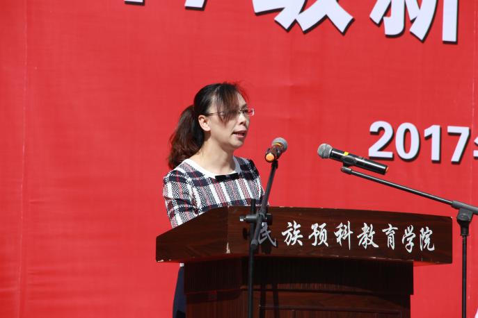 接下来教师代表马亚琳老师发言,她从“改变学习方式”、“创造多彩生活”和“常怀感恩之心”三个方面与同学们亲切交流,希望同学们转变角色,认真投入学习,并表达了对新同学的热烈欢迎与祝福。