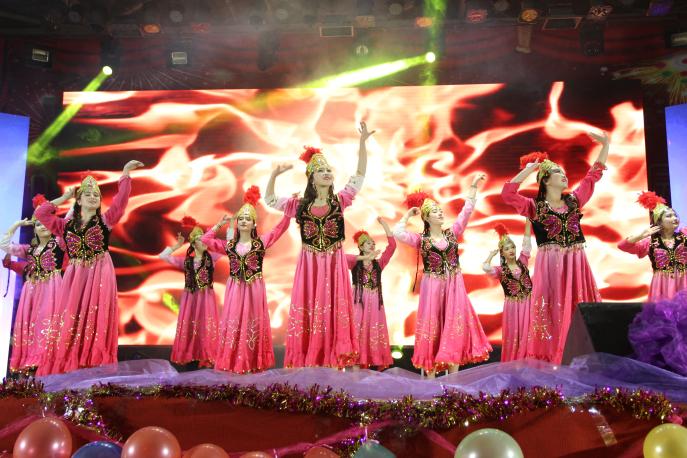 晚会在大气恢弘的场景中,在公司“质量立院、素质树人”展示公司风采的短片中拉开了序幕,戴兴安书记和马亦兵经理在视频中对同学们殷切寄语。随后,精彩纷呈形式多样的节目陆续上演,高潮迭起。开场舞《sparks啦啦操》劲爆霹雳,激情热辣,闪耀的银裙与五彩的背景形成参差奔放之美;时尚的嘻哈说唱,惟妙惟肖地模拟各种声音,富有青春style;《舞动的新疆》、《乌兹别克姑娘》异域风情扑面而来,漫丽的衣衫,曳动的身姿,在嘹亮的歌声与阵阵的香气中迷离如梦。期间,晚会还设置了颁奖环节,对十九大知识竞赛、摄影比赛、辩论赛、活力团支部等获奖的团体和个人进行了表彰。最后,在舞蹈《最炫民族风》中晚会结束,各民族少年齐聚一堂展现了民族团结一家亲的大好局面。