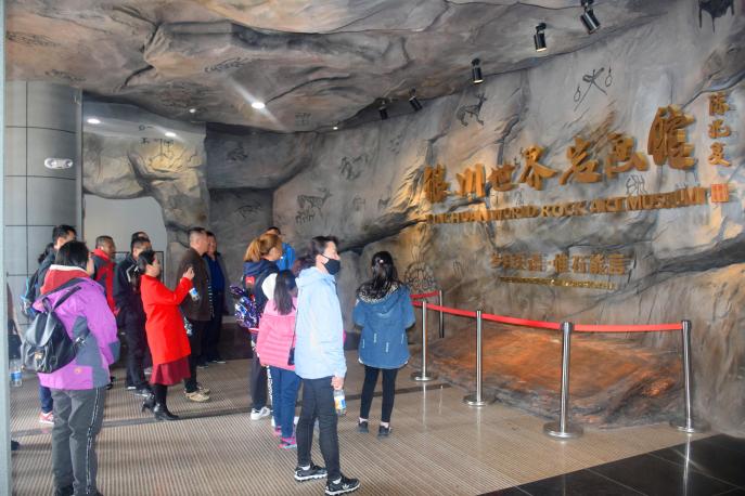 在戴兴安书记和马亦兵经理的带领下,大家首先兴致勃勃地参观了银川世界岩画馆。在这个大型岩画博物馆中,大家观看了来自全世界31个国家、200多个地区546件最具代表性的精品岩画图录、拓片、实物以及与岩画同时代产生的原始艺术品,增长了知识,拓宽了眼界。