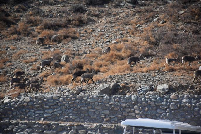 从世界岩画馆出来,大家就徜徉在了贺兰山大峡谷两侧绵延800多米的山崖壁边,史前时期的岩画书写着贺兰山赋予人类的闲适与浪漫。在碧静蓝天和峥嵘巉岩之间一只只肥美的岩羊凝成雕塑,装饰着三八妇女节的风景线。大家身心愉悦的观画过程,也是一场探索历史、挖掘文化、穿越时空的心灵之旅。
