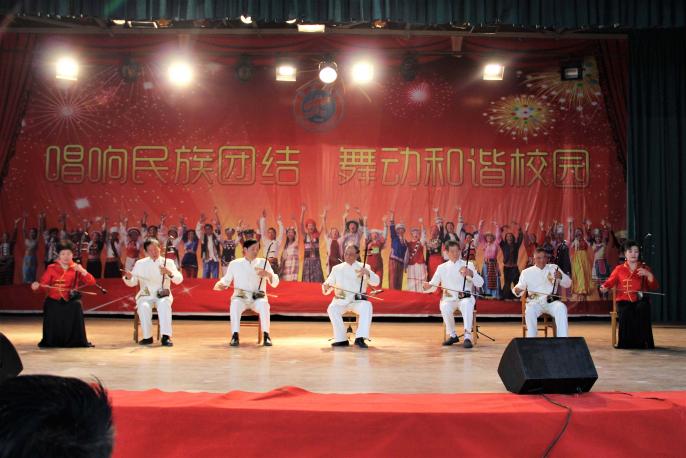 演出在恢宏的民乐团演奏乐曲《红花遍地开》、《宁夏数花》中拉开序幕,锣鼓喧天、琴弦轻拨、胡琴悠扬,让人陶醉;合唱《大中国》热情洋溢,将浓浓的爱国热情传遍全场;京剧表演《我的故乡是北京》潇洒尽兴的京腔京韵配合着妙曼舞姿骄傲地弘扬国粹;《白字经》独居特色,以宁夏方言幽默诙谐,引得台下掌声不断,喝彩连连。