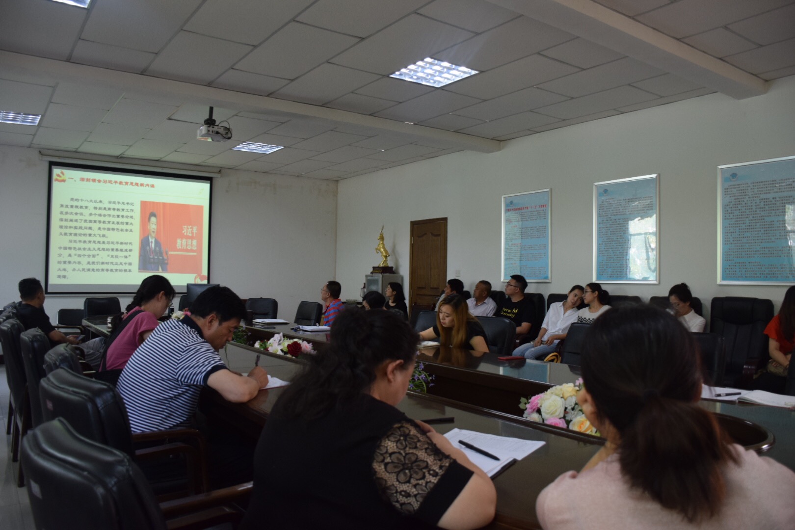2018年6月21日上午,体育平台官网全体教职员工在公司会议室,认真观看了宁夏大公司党委书记金能明和宁夏大公司党委副书记、董事长何建国关于“学习新思想千万师生同上一堂课”的宣讲视频。