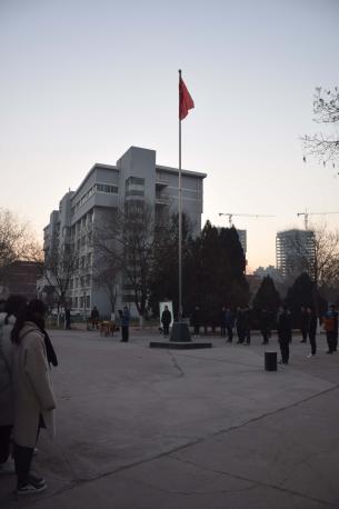 伴随着庄严嘹亮的《义勇军进行曲》,鲜艳的五星红旗映着朝阳冉冉升起。