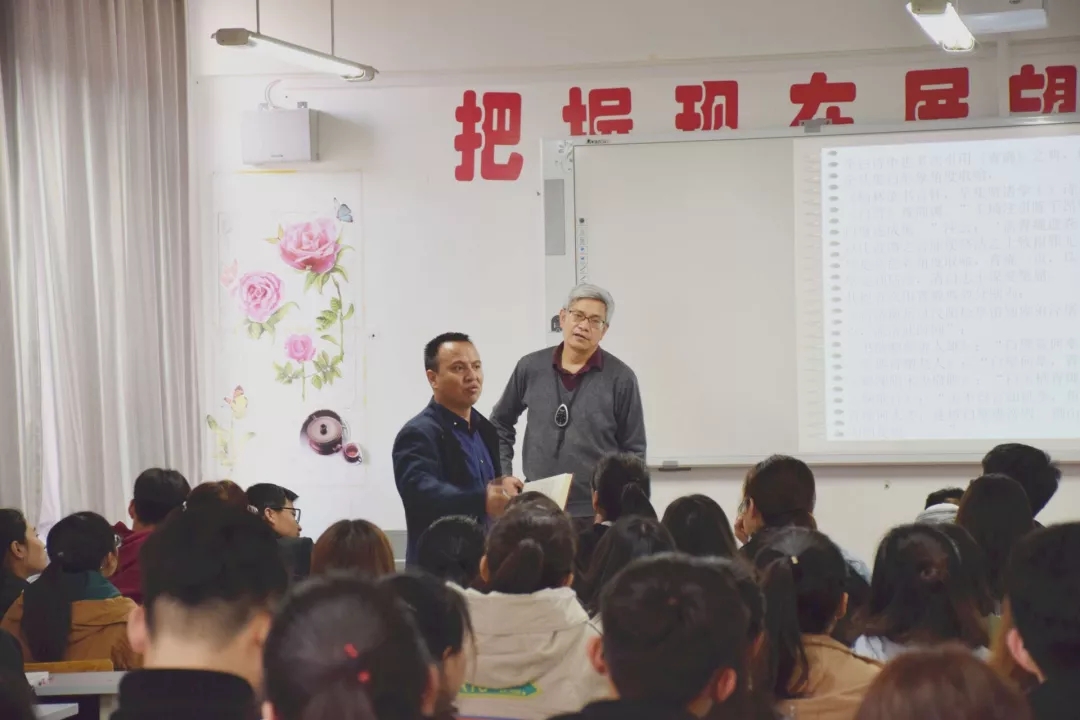 在讲座中,徐希平教授声情并茂,力图展现李白曲折而又波澜壮阔的一生。李白的一生有两大矢志不渝的人生追求:在政治上建立一鸣惊人的伟绩,在精神上获得彻底的自由。徐希平教授还为同学们讲解了“汉唐民族融合时代原因”,讲述李白诗歌是自汉魏至唐初数百年间南北交汇,民族同化的产物。而多民族精华凝结成的李白诗歌,又作为宝贵的中华文化遗产之一,为后世各民族所钟爱。故李白也就成为中华民族大融合,大团结的象征!随后又讲述了李白的“家庭教育”,李白在接受汉族文化的同时,也掺杂以浓厚的西北民族习俗。讲座的最后徐希平教授为大家详细地介绍了李白以及李白与少数民族密切关系及其原因。