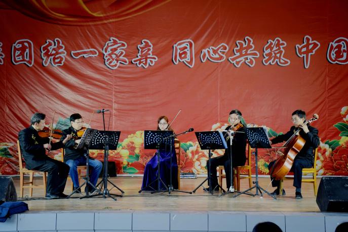 演出在恢宏的民乐团演奏乐曲《红花遍地开》、《宁夏数花》中拉开序幕,锣鼓喧天、琴弦轻拨、胡琴悠扬,让人陶醉;合唱《大中国》热情洋溢,将浓浓的爱国热情传遍全场;京曲表演《我的故乡是北京》潇洒尽兴的京腔京韵配合着妙曼舞姿骄傲地弘扬国粹;《百字经》独具特色,以宁夏方言幽默诙谐,引得台下掌声不断,喝彩连连。