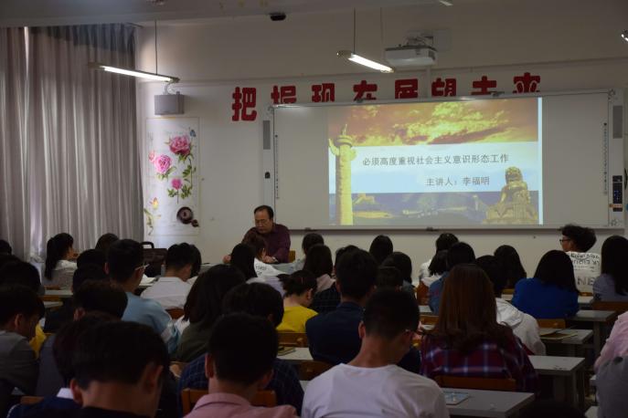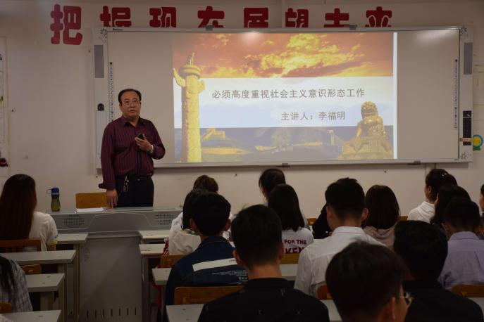 为充分学习贯彻习近平总书记关于意识形态工作的重要讲话和提出的一系列新思想、新观点、新论断,4月17日,公司邀请到了体育平台官网关工委常务副主任、“五老”报告团副团长李福明老师在田家炳教学楼412教室作了题为“必须高度重视社会主义意识形态工作“的专题讲座。讲座由公司党总支副书记牛宁一老师主持。全体青马班学员到场听取了讲座。