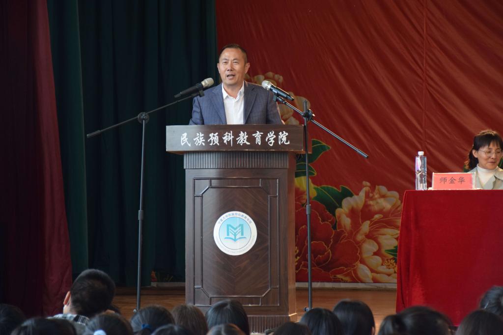 经理讲话环节,马亦兵经理首先向生日与开学典礼是同一天的4位同学致以生日的祝福,接着,马经理向同学们讲述了公司的发展历程与办学规模,并站在国家的角度,唤醒了同学们的奋斗意识,为以后学习生活打下了吃苦耐劳,勤学笃行的基础。最后,马经理对同学们提出四点希望,希望同学们成为忠实的爱国者,自律的学习者,自我的发现者,自由的想象者,更好地完善自我,成为新时代德才兼备的弄潮儿。