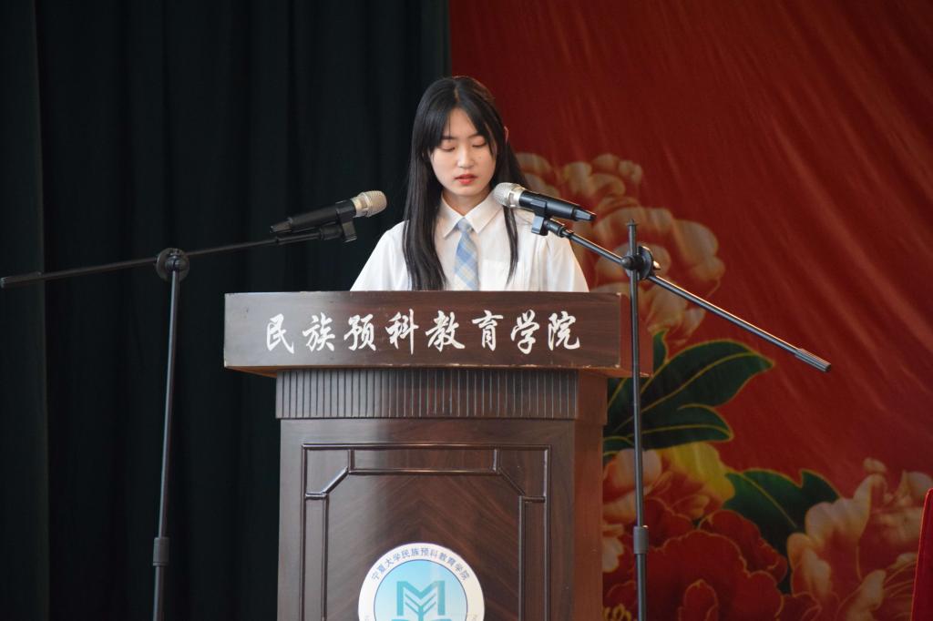 新生代表发言环节,2020级新生代表李亦楠同学进行了声情并茂的发言,她倡导新生养成良好习惯,从现在做起;掌握方法,为终身学习做准备;培养能力,为终身理想积蓄力量。带领2020级新生承诺:一定学好专业本领,锤炼思辨和批判精神,牢记心系天下的使命,努力成长为一名充满激情并敢于拼搏的年轻人,富有责任并勇挑重担的年轻人!