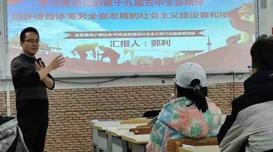 党的十九届五中全会,擘画了中国未来5年以及15年的发展新蓝图,指明奋斗新方向。为学习贯彻党的十九届五中全会精神培养德智体美劳全面发展的社会主义建设者和接班人,11月18日晚,公司党总支副书记郭利老师在金凤校区田家炳教学楼312教室为公司团学干部作了党的十九届五中全会精神宣讲。