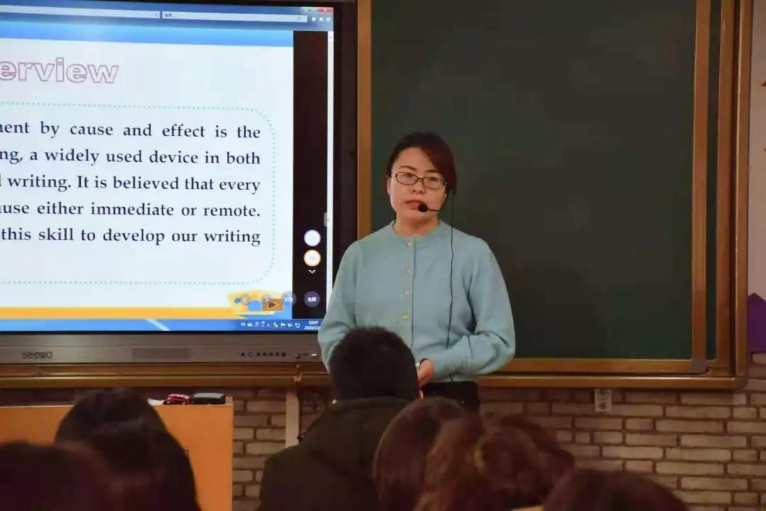 英语教学部霍侠老师以“Cause and effect paragraph writing”为主题,通过学习通App用举例子的方式,增强了与员工的互动,以幽默的语言,深入浅出,层层递进的向同学们讲述英语写作技巧。