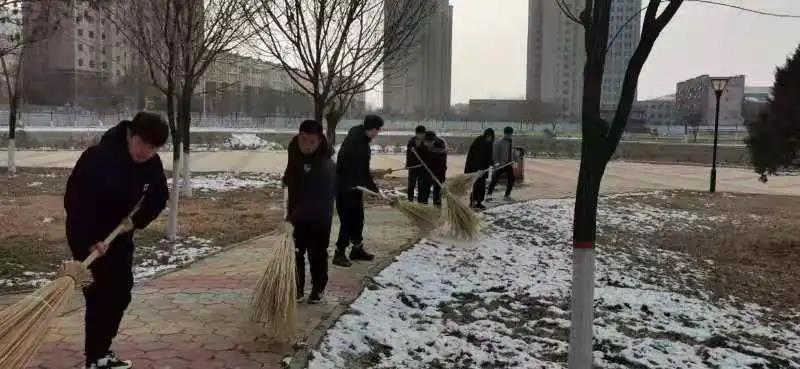 除雪开始前,原博老师分配清扫区域,并嘱咐员工一定要注意安全。在老师的带领下,同学们拿着劳动工具来到了分配好的场地前,开始了除雪活动,有的负责草坪及花坛,有的负责清扫通向操场的路段,有的负责清扫操场。老师们和员工们一起,干劲十足,虽然天气比较冷,但这一点也没有影响大家的热情和工作效率。