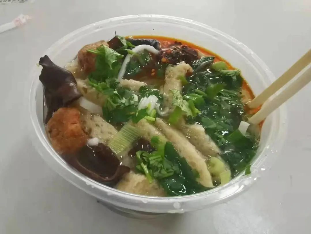 同学们有秩序的在窗口排队等候,烩肉肉汤浓郁鲜美,粉条爽滑,油饼松软可口,此等美味,让同学们乐在其中。