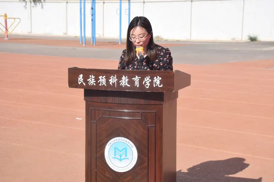 教师代表岳红格老师发言。她表示同学们这一年的拼搏努力与奋斗成长,老师们都看在眼里。同学们在运动会加油呐喊的激情、英语话剧热情投入的演绎、语文诗歌激情澎湃的朗诵、校园文化艺术节舞韵翩跹的身姿,以及各式各样活动的付出与收获,都印刻着预科的独家记忆。她祝愿同学们前程似锦,未来永远激情满怀,斗志昂扬!