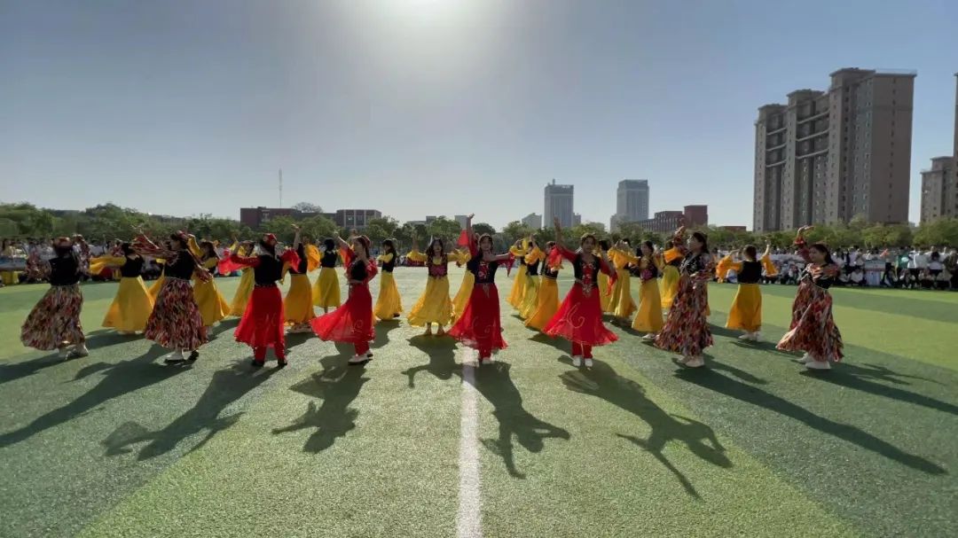 由舞蹈队表演节目。队员们成为操场上最靓丽的风景,用舞动的身姿去诠释青春的乐章,为开幕式增添了别样的色彩。