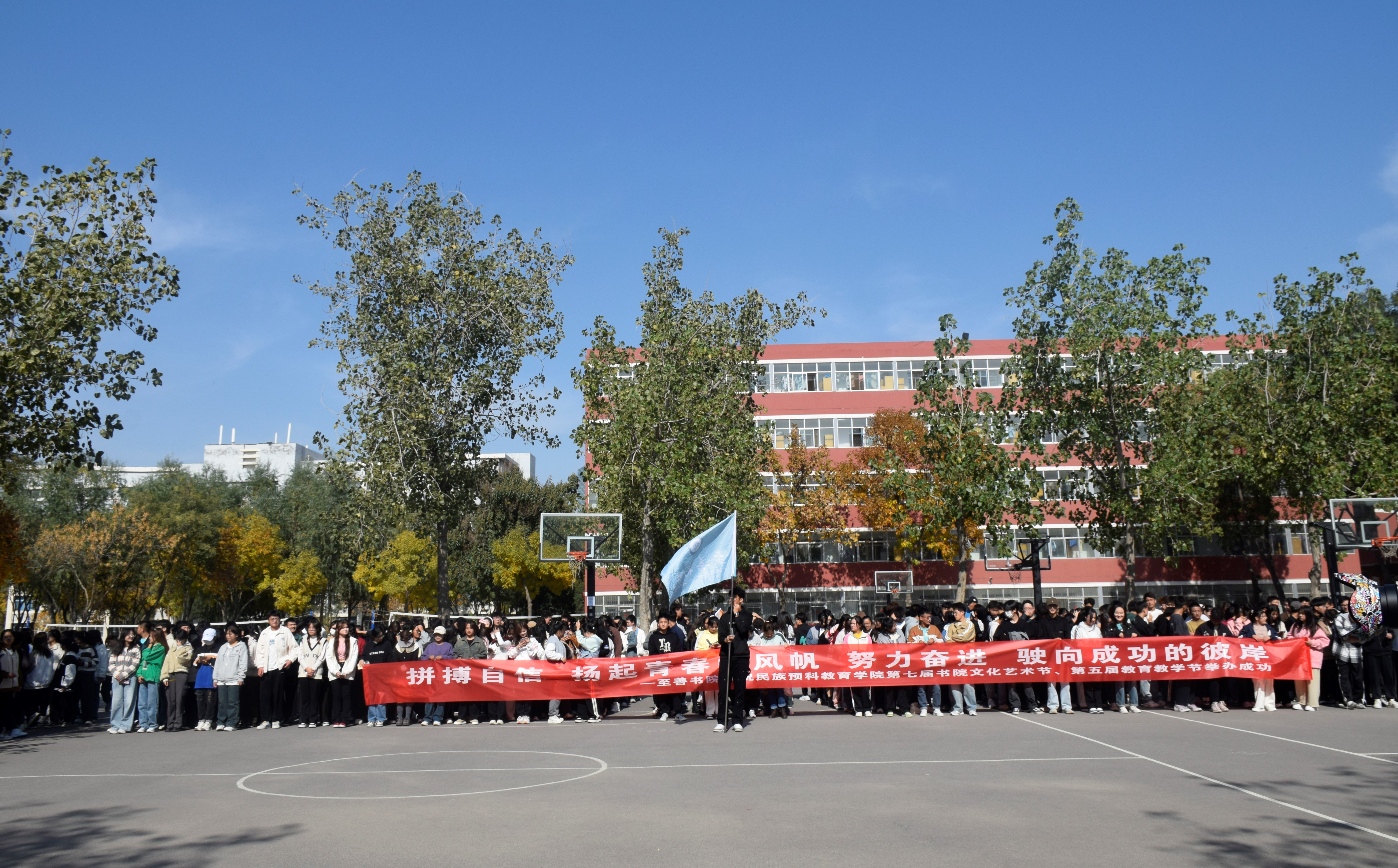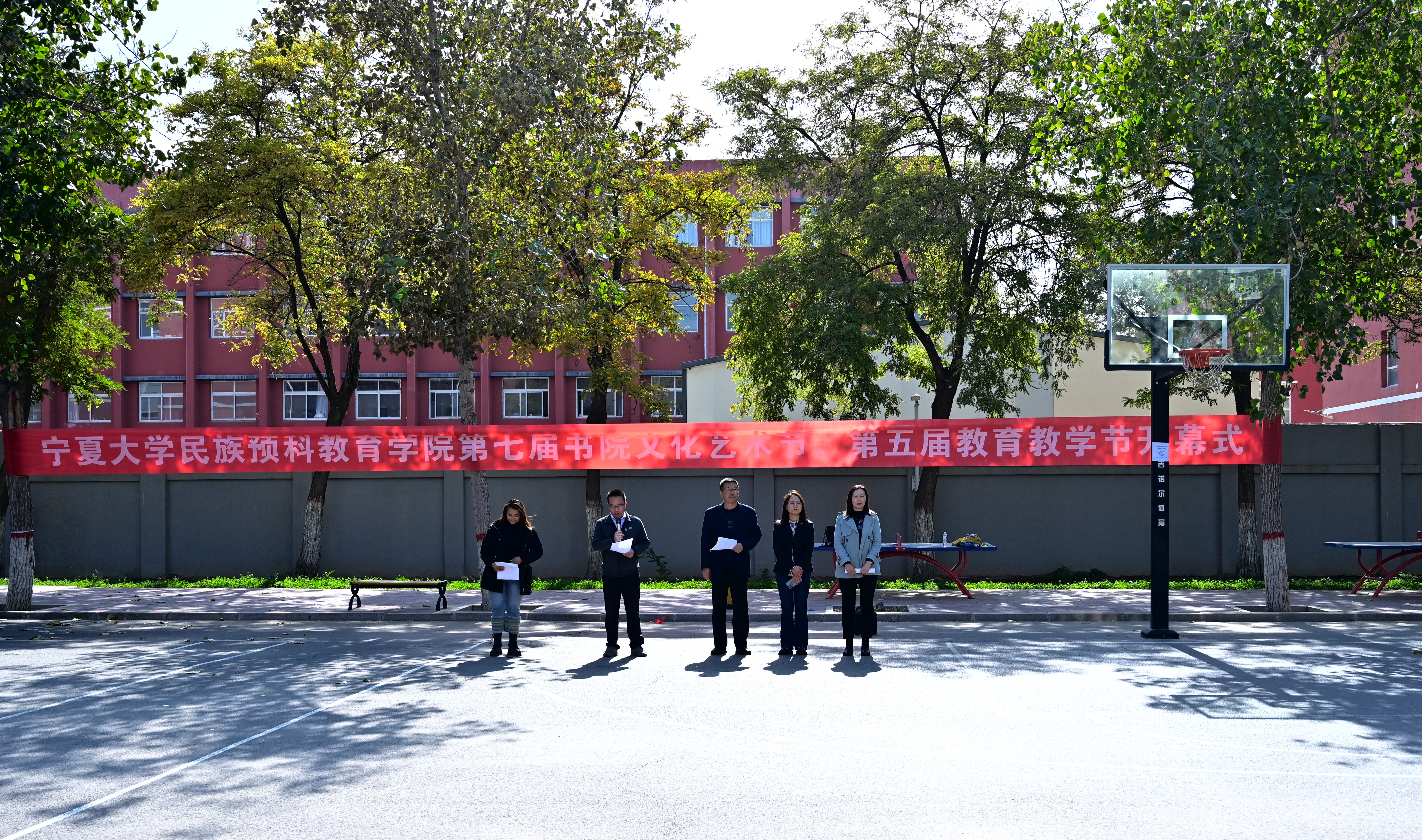 迪丽努尔老师宣读《体育平台官网第七届书院文化艺术节活动方案》。本次书院文化艺术节包括“民族团结杯”运动会、“多彩民族,共筑一家”系列比赛、至善、其正、文质书院系列活动、实地参观类活动和专业宣讲。