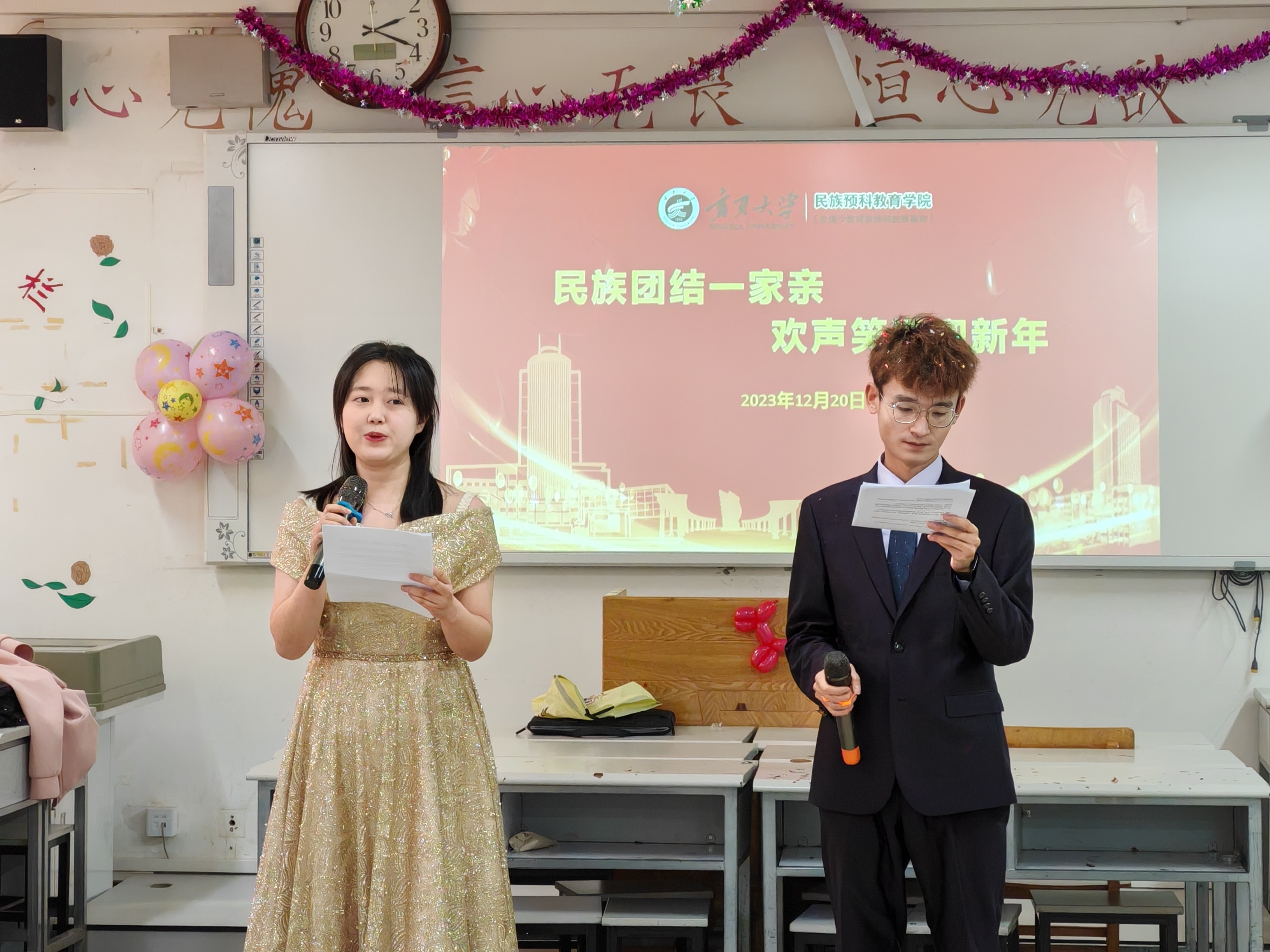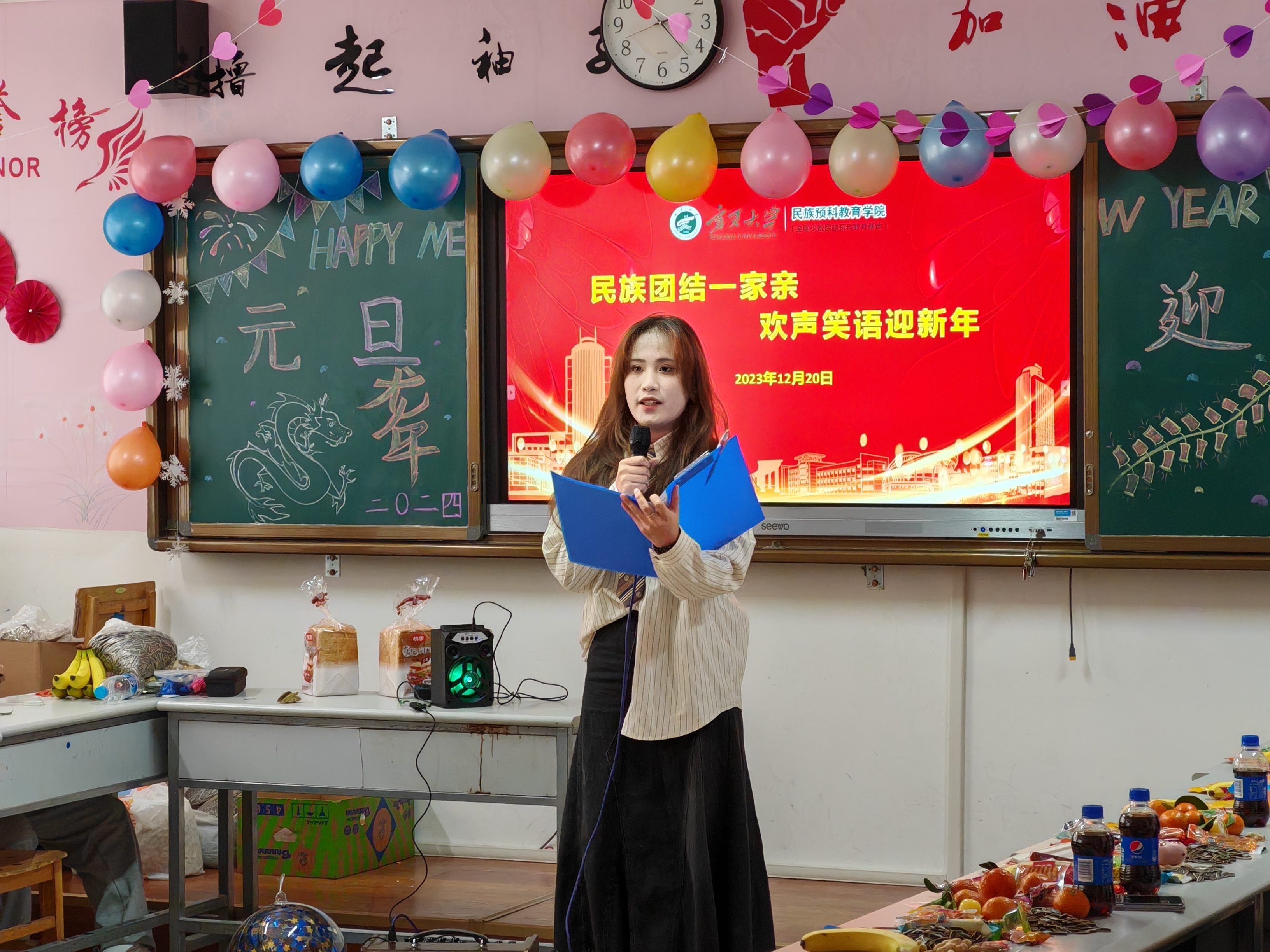 为丰富校园文化生活,充分展示全院员工才艺和精神风貌,促进各民族交往交流交融,在2024年元旦到来之际,体育平台官网于12月20日下午举办“民族团结一家亲 欢声笑语迎新年”班级座谈会,26个班级在各自习室内组织活动。公司党总支书记倪彬、经理马小玲、各班班主任出席此次活动。