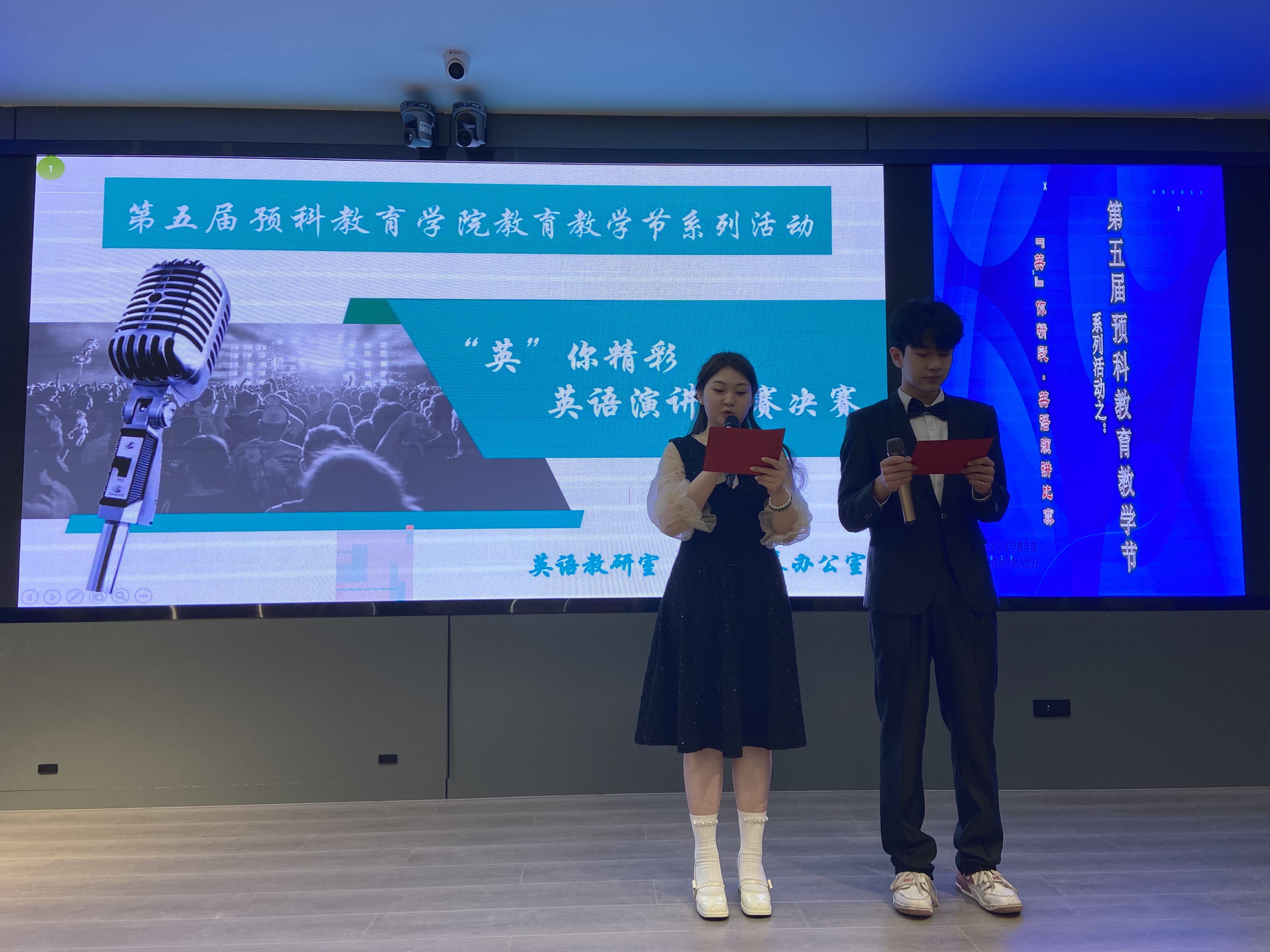 演讲比赛在马明卓、安凯尔两位主持人流利的英语和饱满的热情中拉开帷幕。英语教研室全体教师担任本次比赛评委。