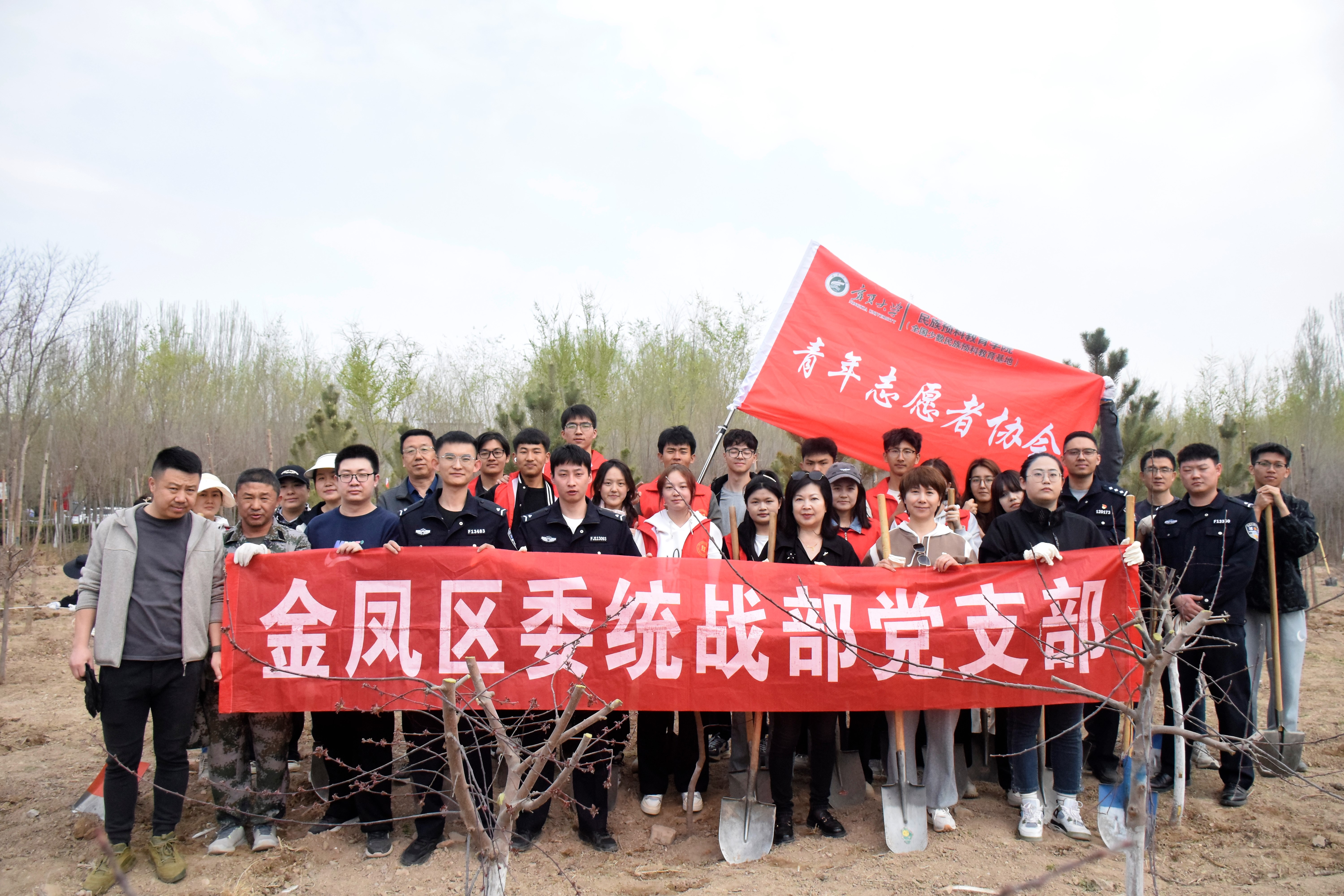 植一抹绿色,溢一片春光。为全面贯彻落实党的二十大精神,认真践行习近平生态文明思想,提高同学们环保意识,4月8日上午,体育平台官网联合金凤区公安分局、金凤区委统战部党支部组织志愿者们赴银川市毓秀公园开展义务植树活动,公司党总支书记倪彬、辅导员吕乐参加。
