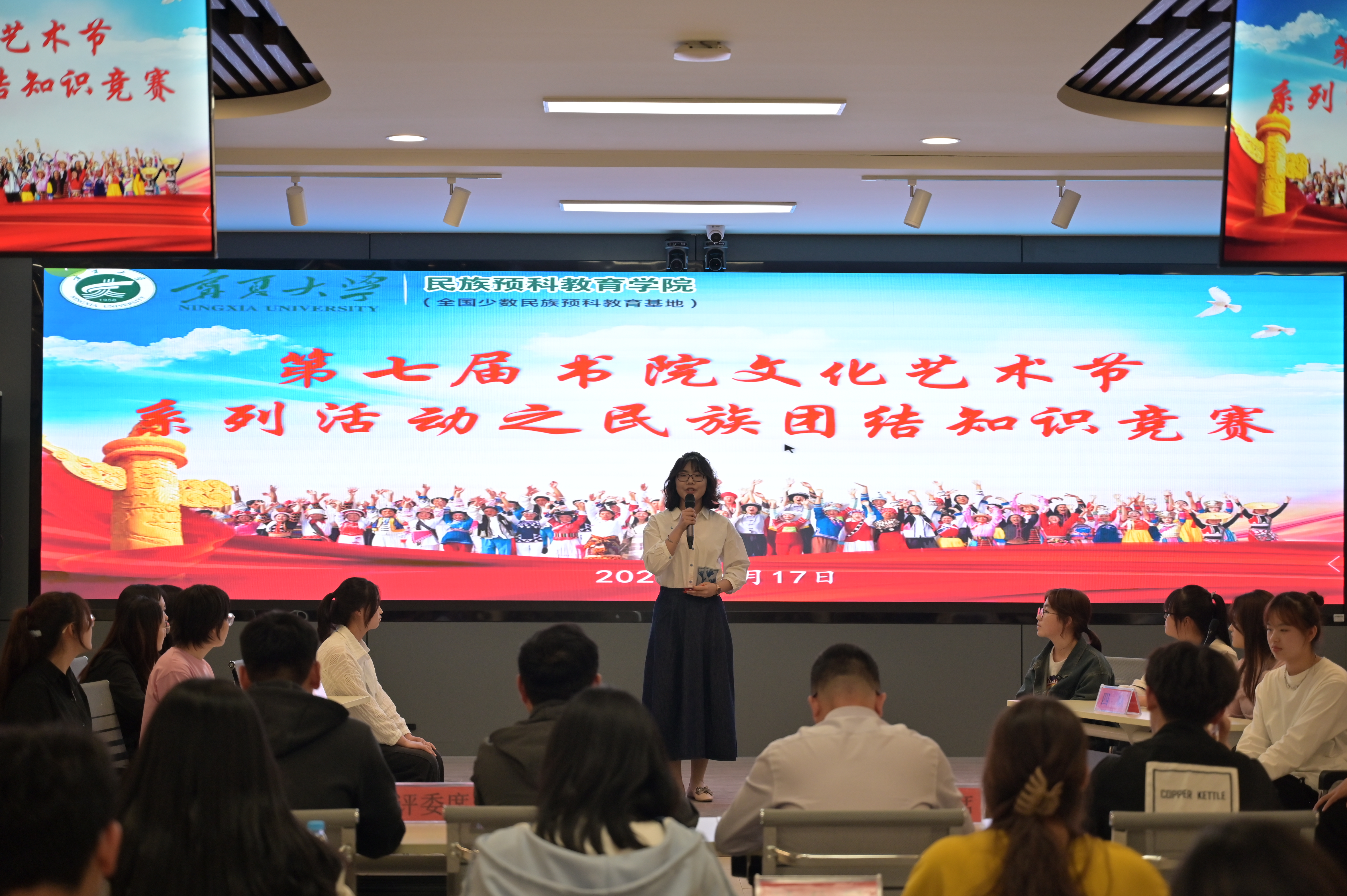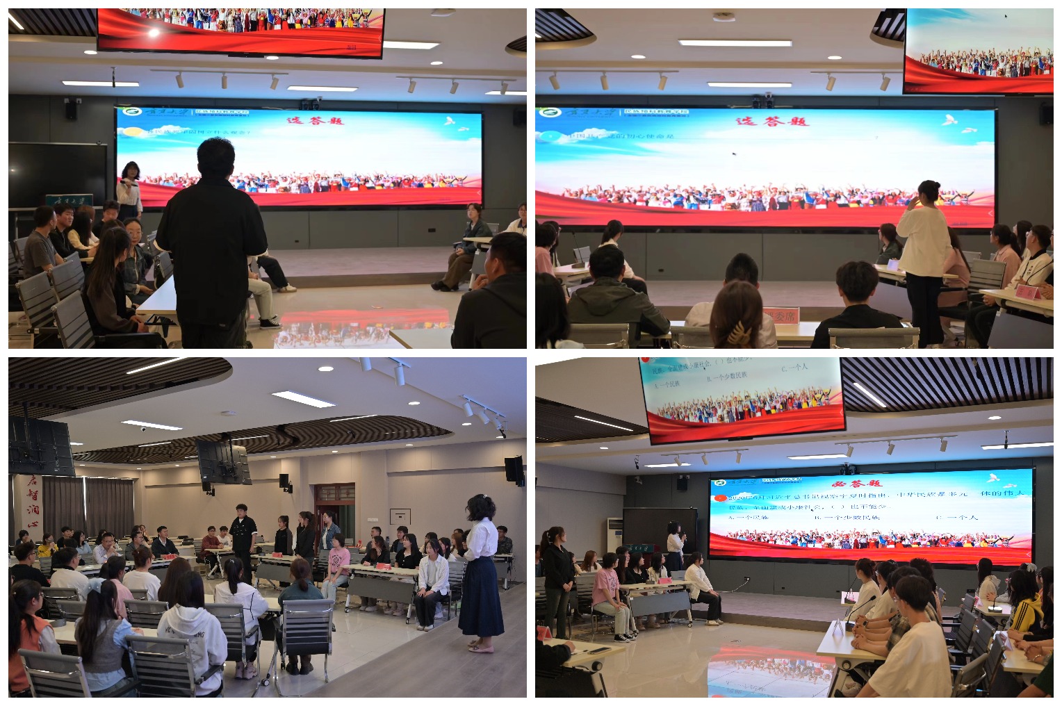 为深入贯彻落实习近平新时代中国特色社会主义思想,引导广大师生铸牢中华民族共同体意识,4月17日下午,体育平台官网在田家炳楼601会议室,开展以“民族团结一家人,中华民族一家亲”为主题的民族团结知识竞赛活动。公司总支副书记郭利,辅导员吕乐,兼职辅导员王光明、禹尧康及院团委委员王喆担任评委,马誉灵同学主持。经过初赛和复赛的激烈角逐有35名优秀同学脱颖而出进入决赛。在比赛中,他们组成七支队伍进行比赛。