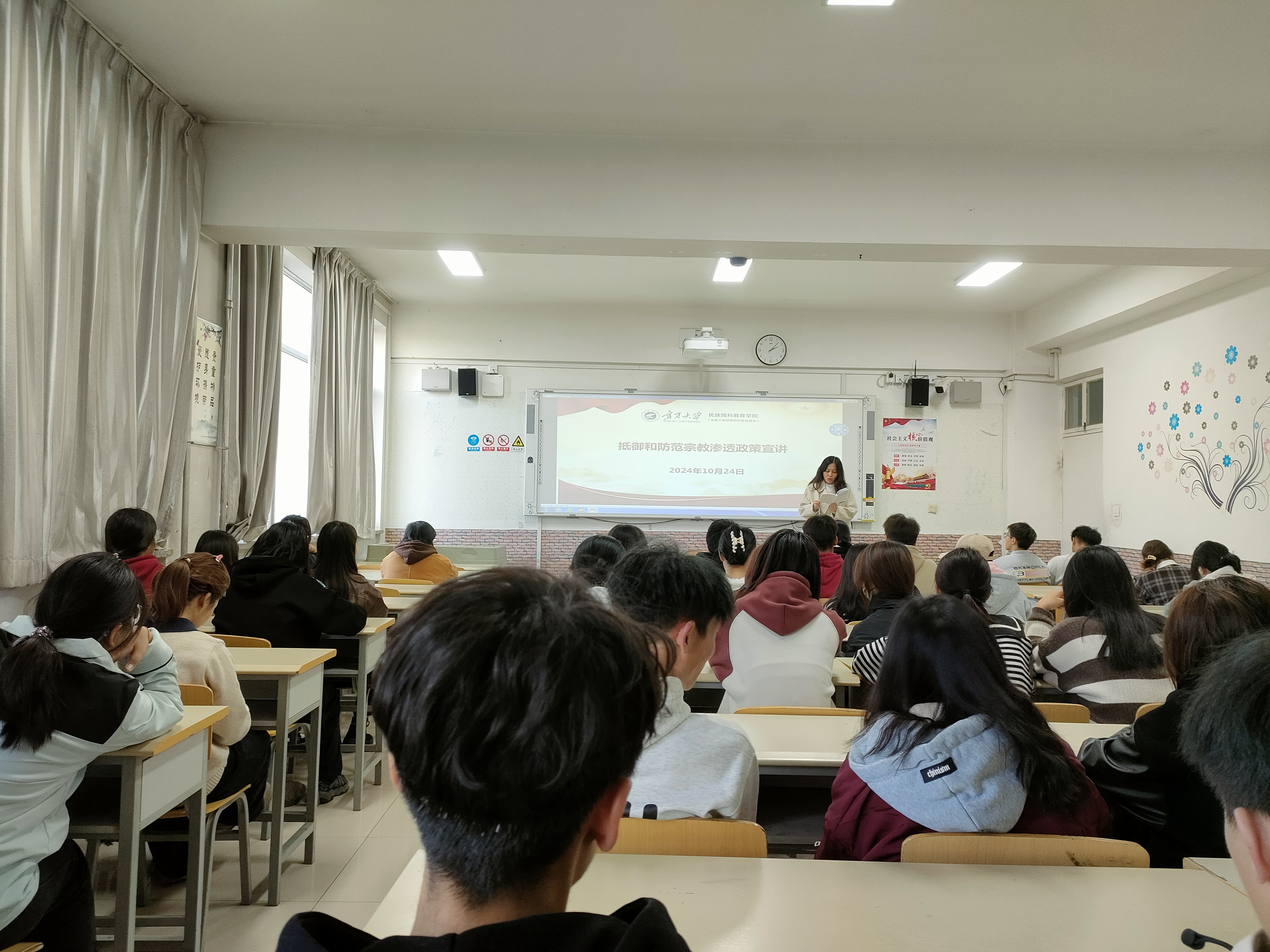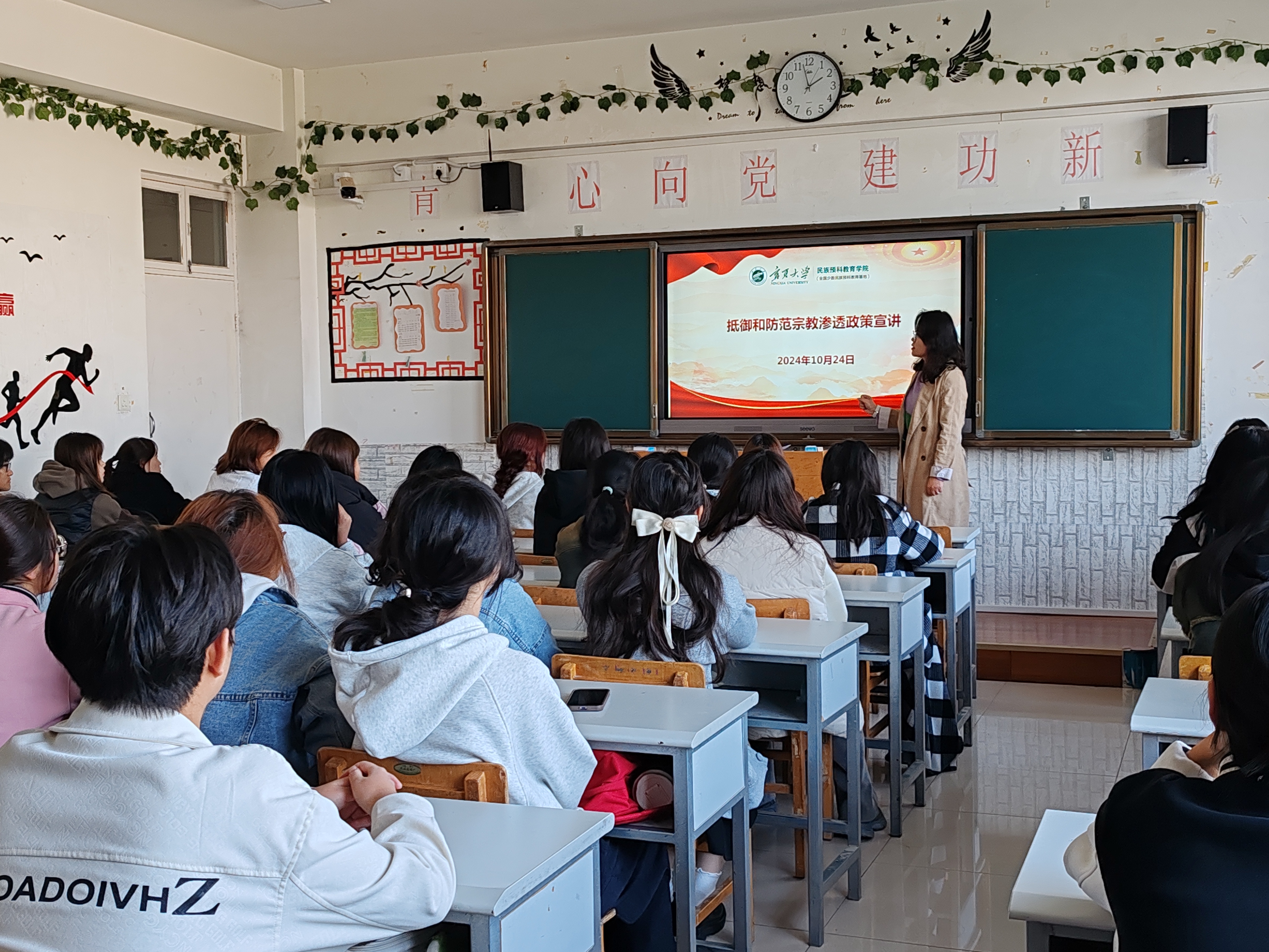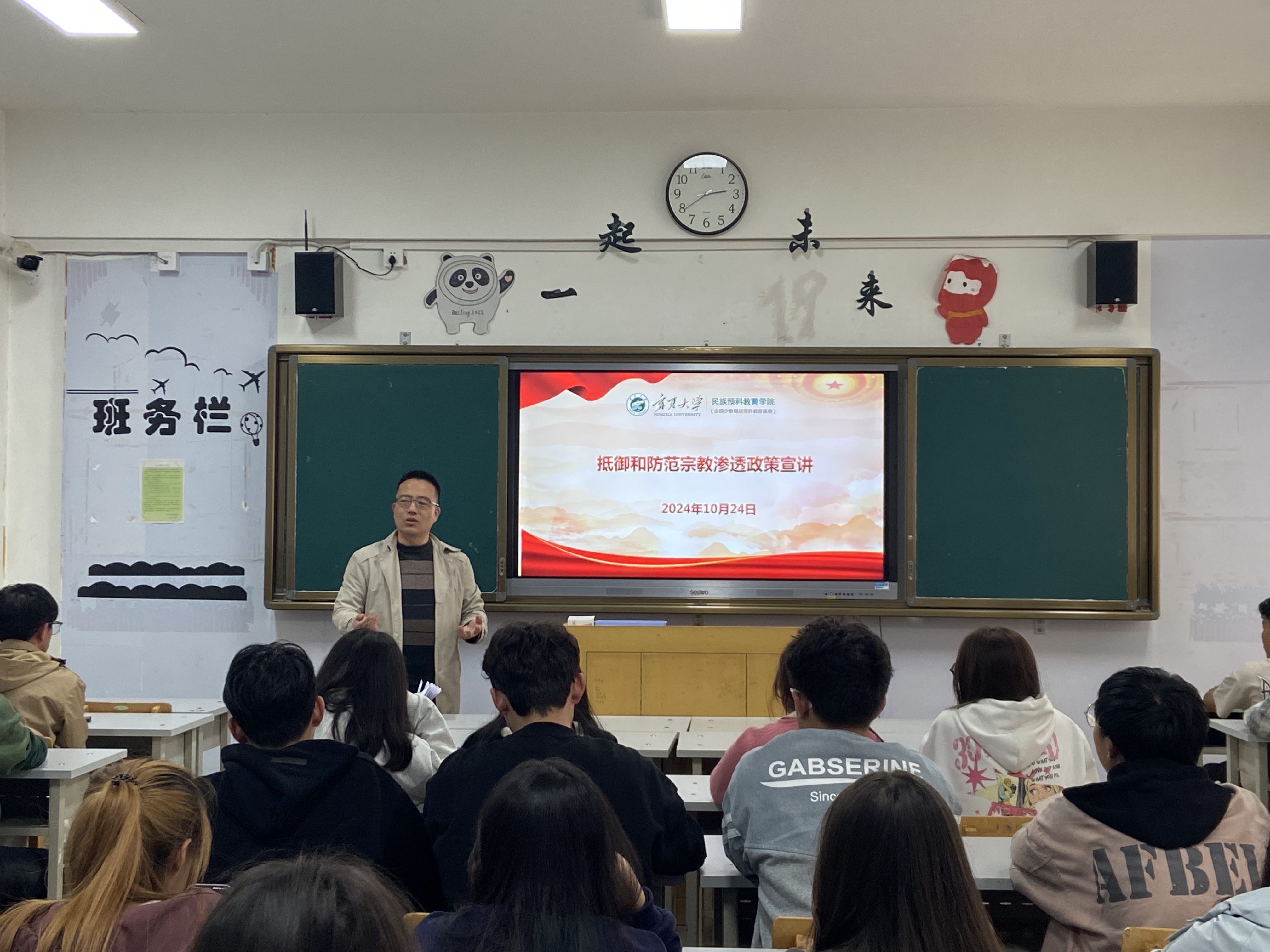 班主任向同学们讲述了“什么是宗教渗透”“宗教渗透的危害和表现形式”“如何有效防范宗教渗透”等内容,着重阐述了“宗教渗透”对公司造成的恶劣影响。通过引用相关法律法规、政策文件以及浅显、生动的事例,使员工对宗教渗透有了更加清晰的认识。引导师生树立正确的马克思主义宗教观,树立正确的世界观、人生观、价值观,鼓励师生参与校园文化建设,弘扬社会正气,抵制歪风邪气。
