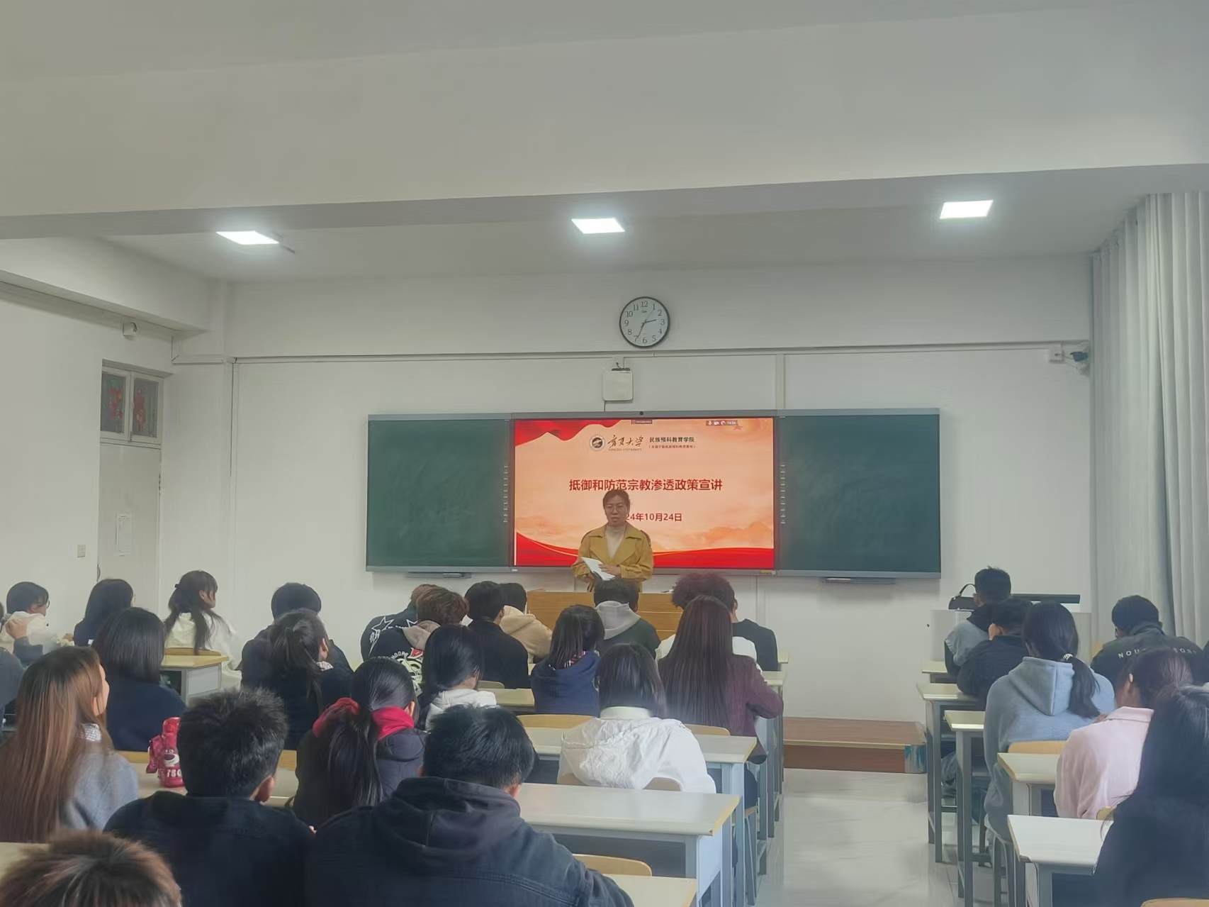 为维护广大师生的权益、建设和谐校园,做好抵御和防范宗教向校园渗透工作。10月24日下午,公司组织开展以“抵御和防范宗教渗透”为主题的班会,此次班会由各班班主任主持,公司领导进班指导,全体同学参加。