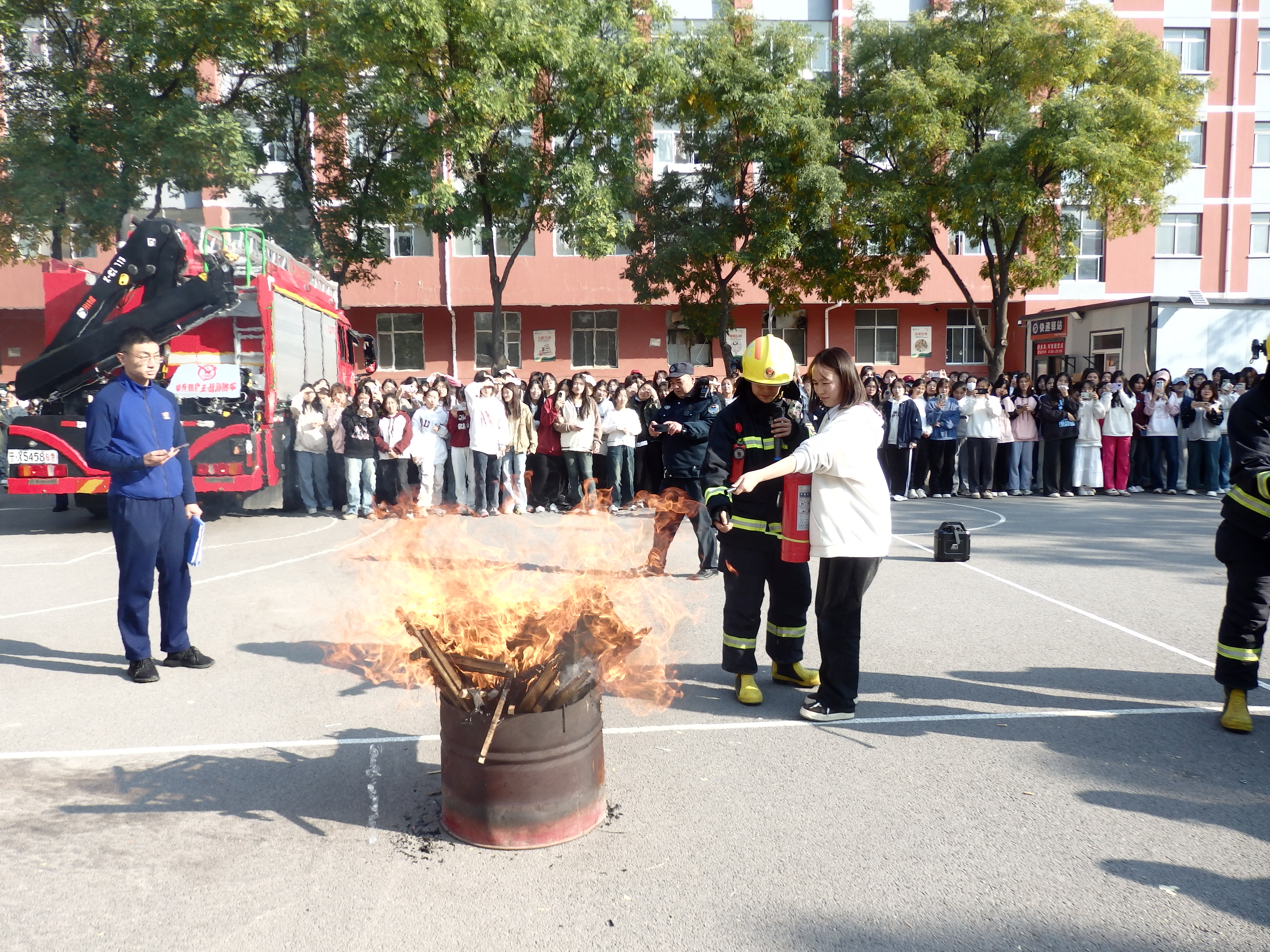 消防中队现场讲解逃生注意事项。消防队员和公司保卫处人员向师生们讲解演示了灭火器的正确使用方法,同学们认真聆听,亲手操作,学习、体验灭火器的使用方法。