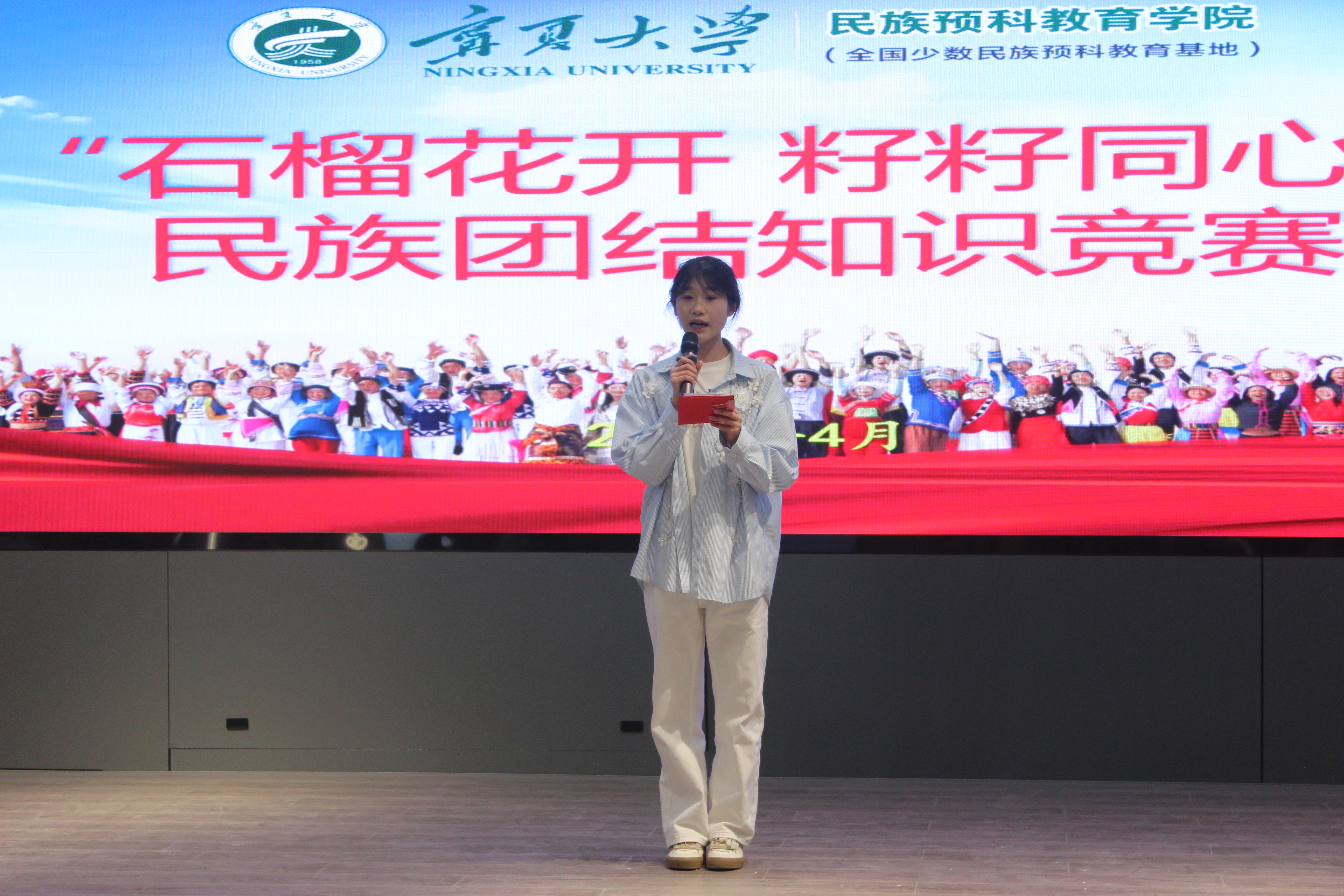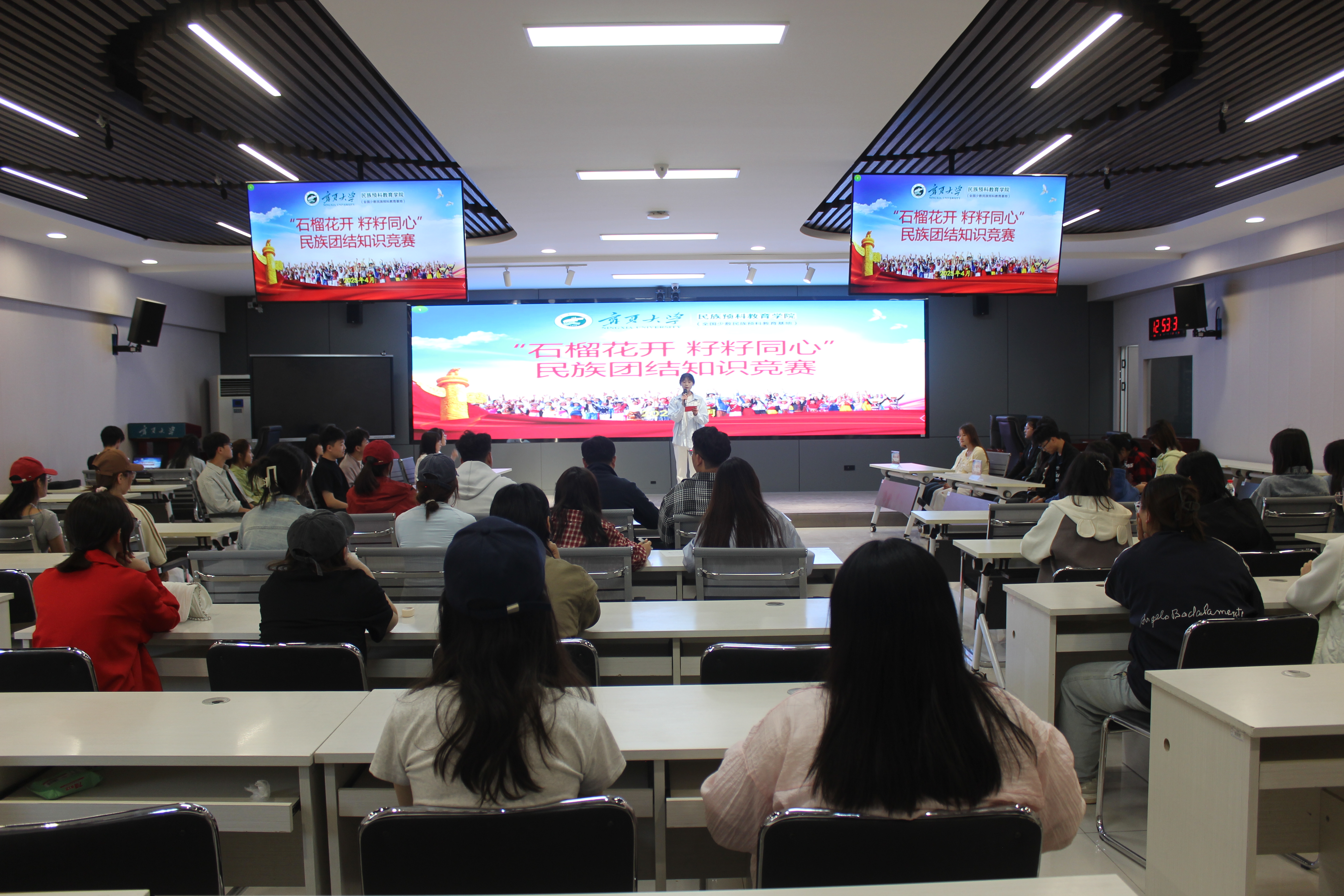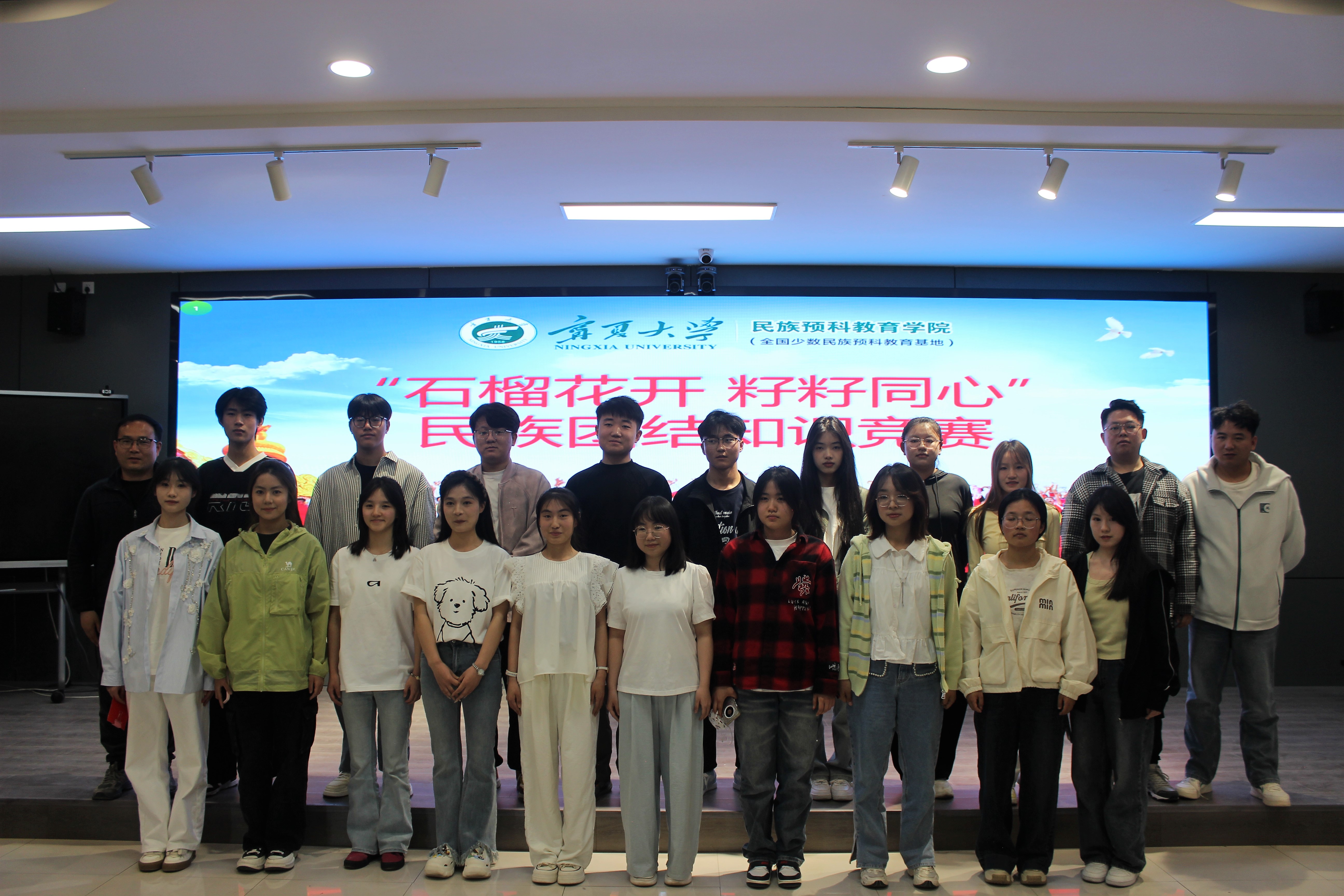 为深入贯彻习近平总书记关于加强和改进民族工作的重要思想,引导广大师生铸牢中华民族共同体意识,4月24日下午,体育平台官网在田家炳楼601会议室开展以“石榴花开 籽籽同心”为主题的民族团结知识竞赛。本次活动由马烨主持,辅导员吕乐,兼职辅导员魏有亮、李佳文担任评委。16名优秀同学经过层层角逐,进入决赛,在比赛中,他们组成四支队伍进行比赛。