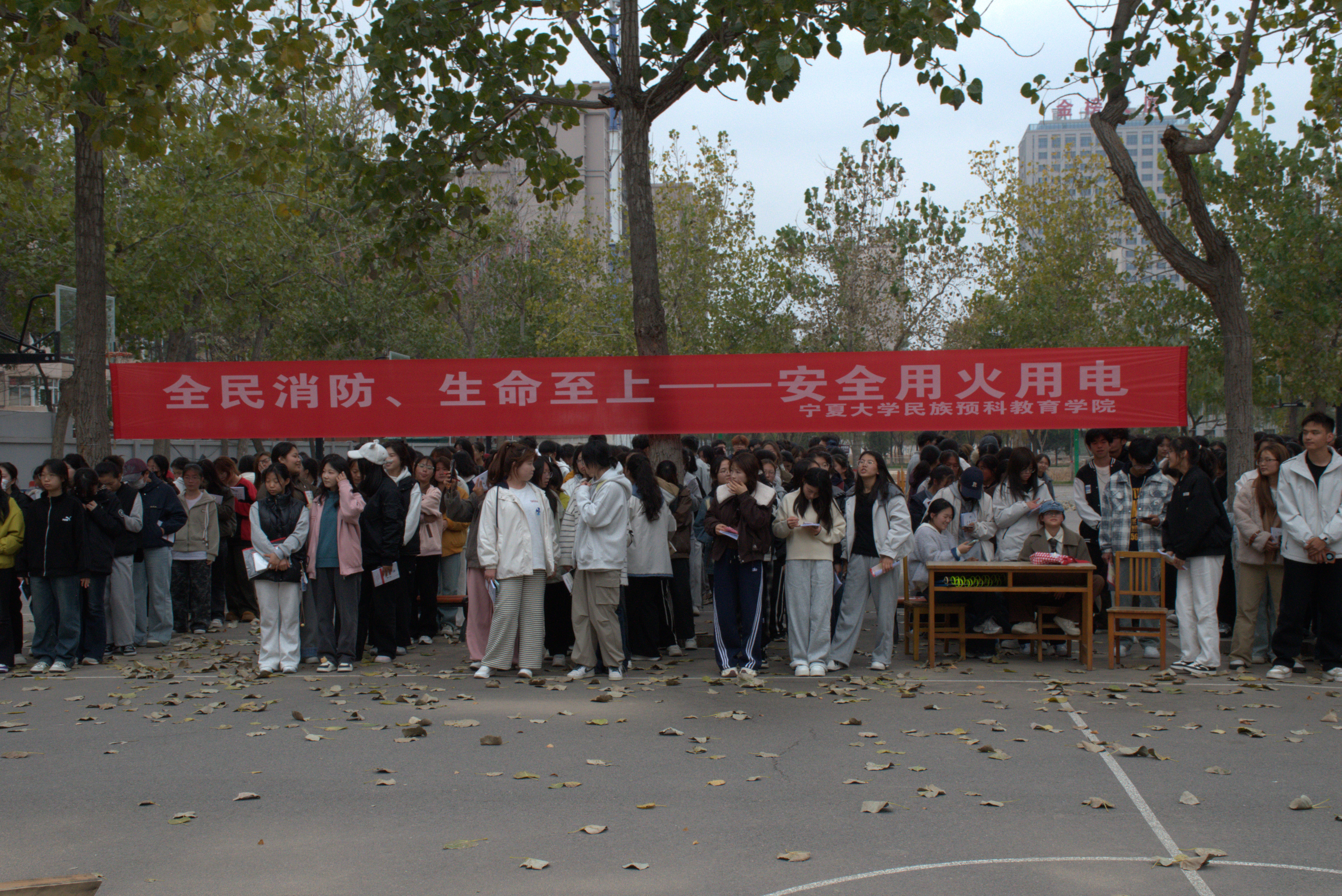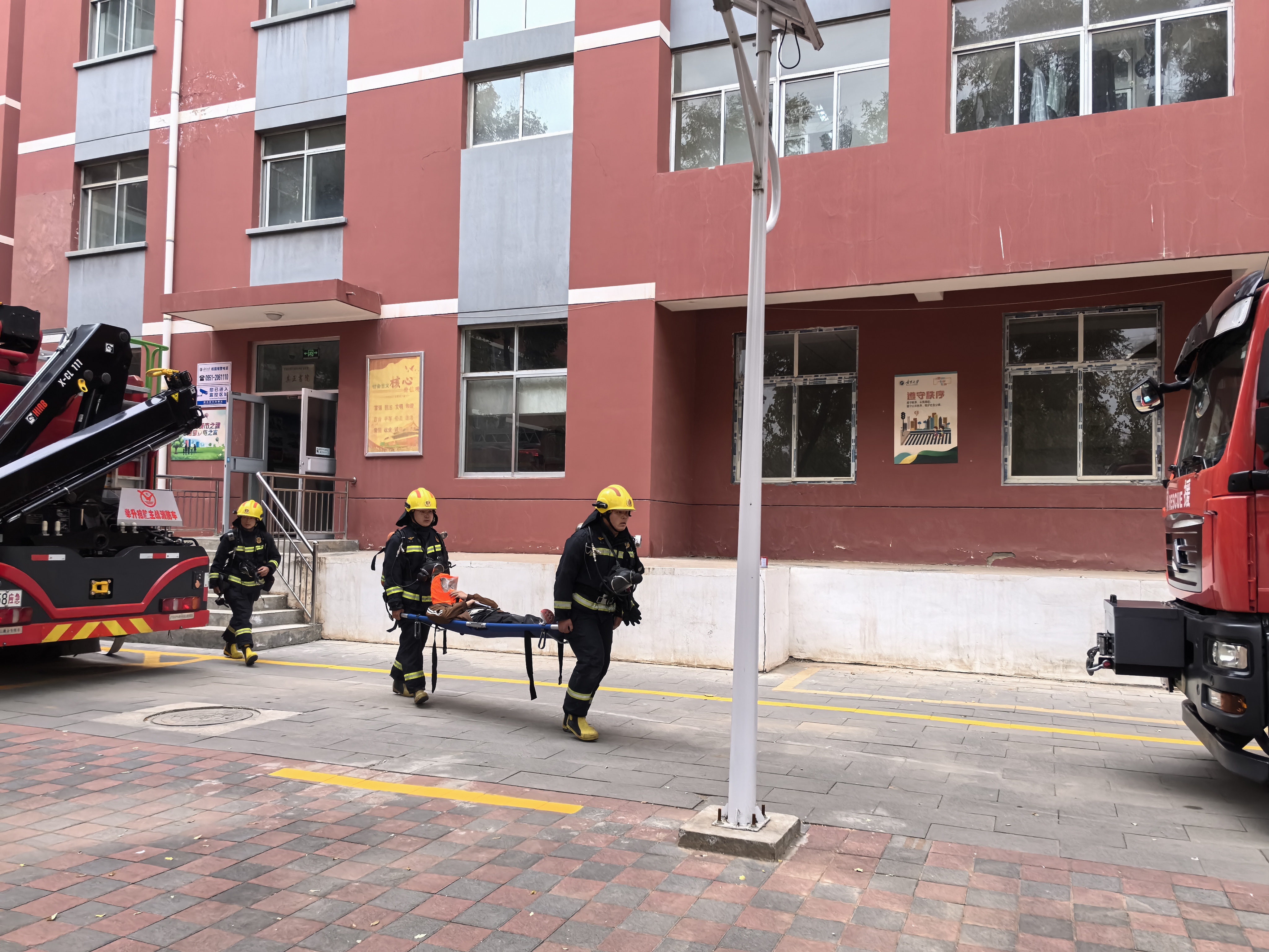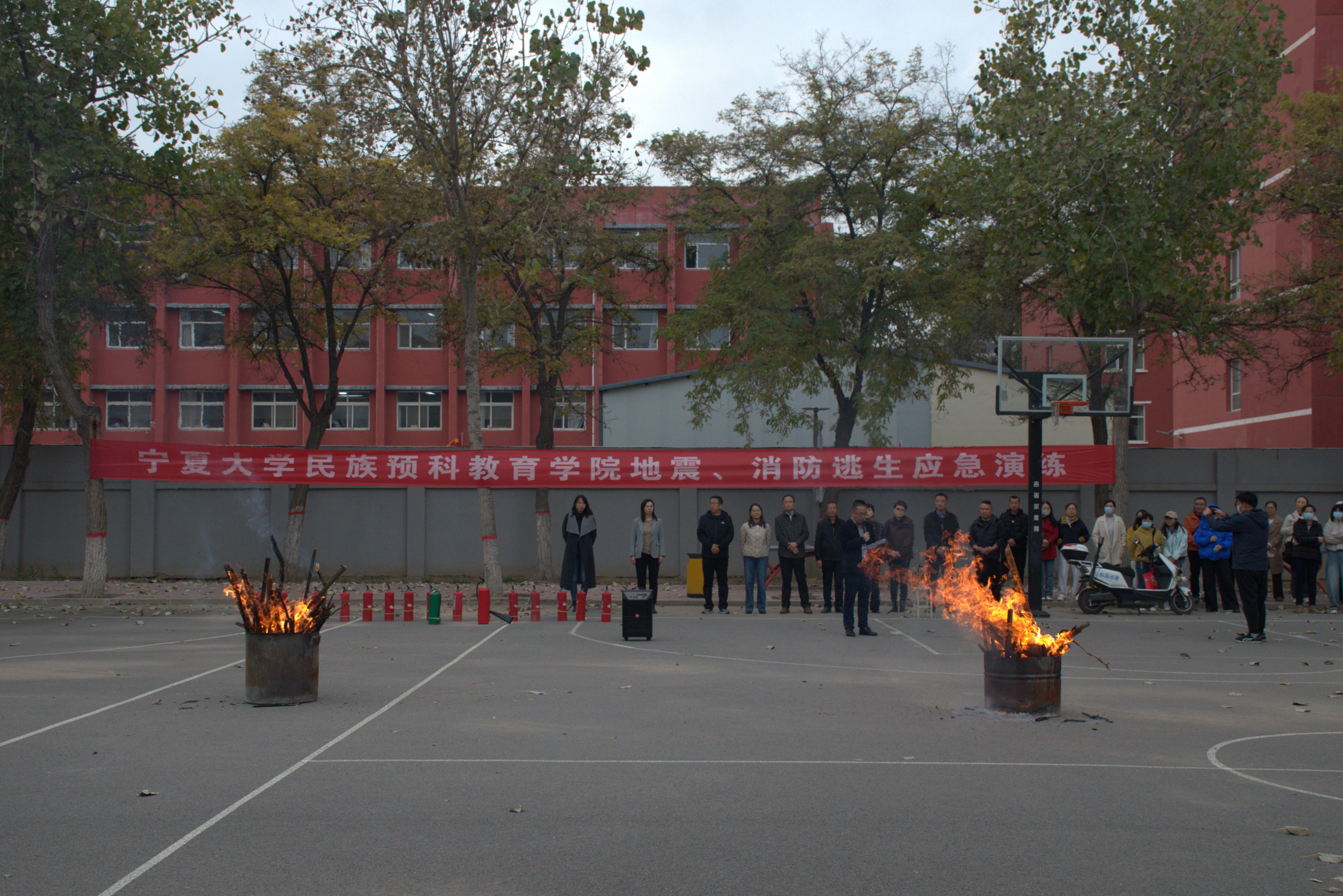 为进一步增强公司师生应对地震、消防等突发事件的应急疏散意识与自救能力,在全国第34个“消防安全日”来临前夕,11月5日下午,公司联合校保卫处、终身教育学部、银川市金凤区宁安南街消防救援站开展地震、消防逃生应急演练,参与演练的师生人数1000余人。
