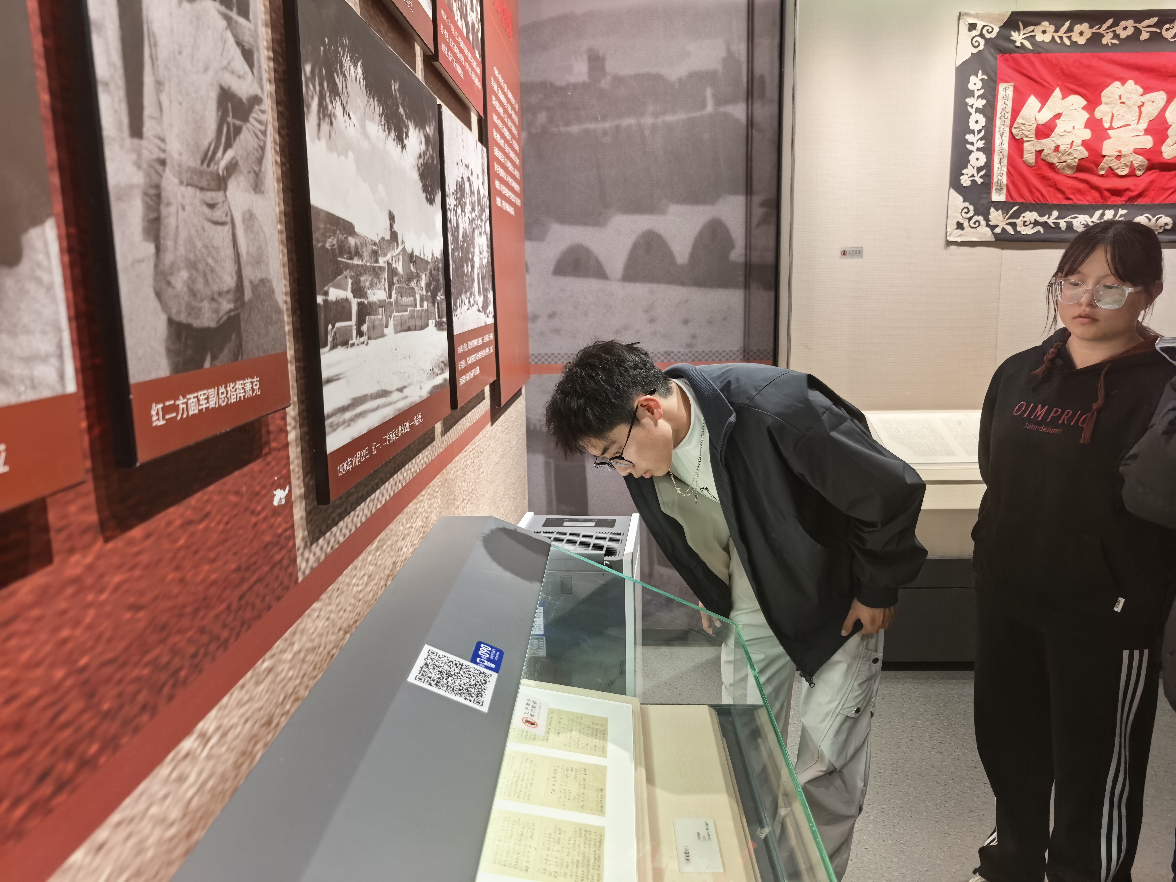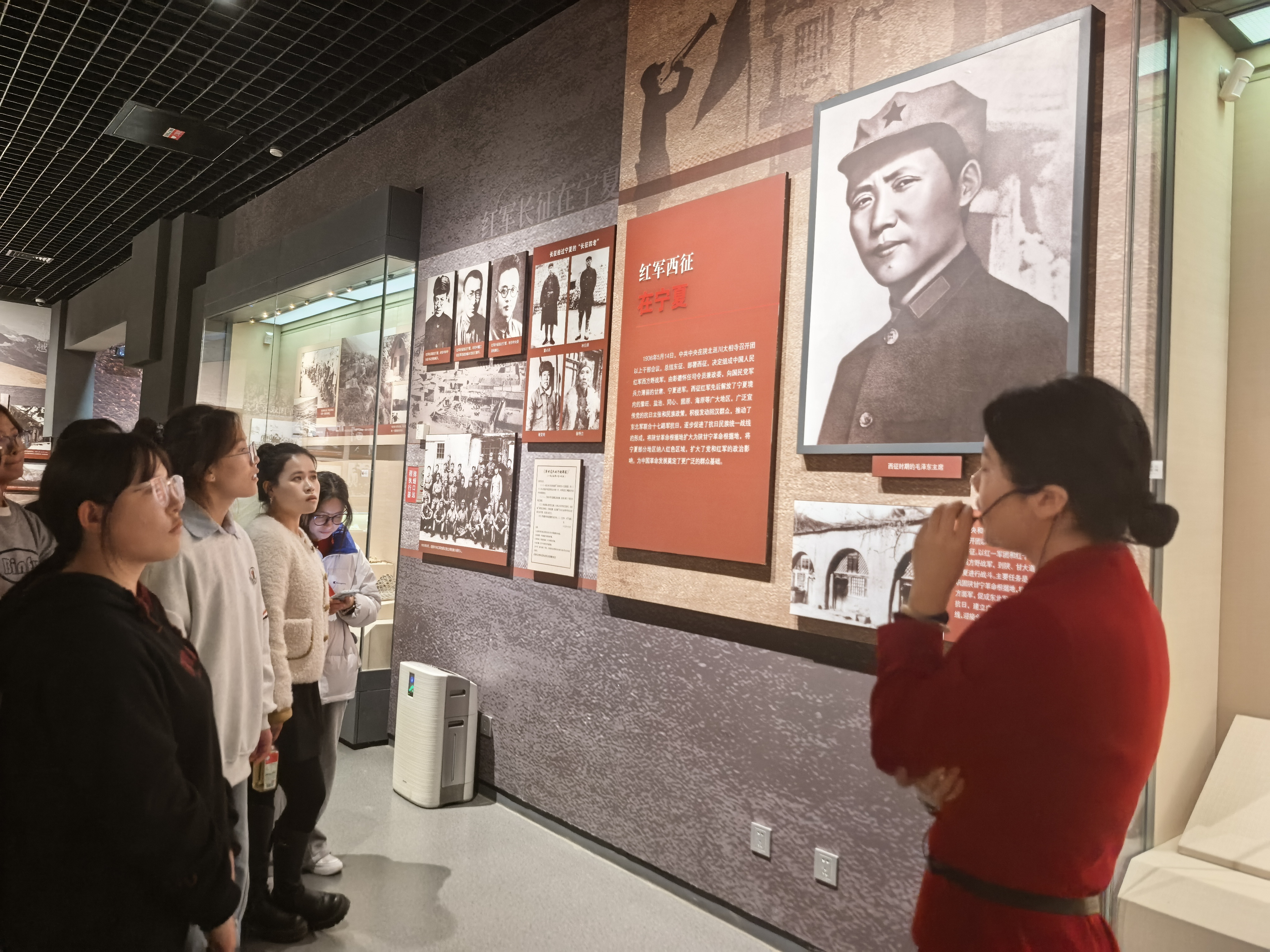 “红旗漫卷—宁夏革命文物陈列”展区成为本次参观的重点。从早期革命活动的星火燎原到红军长征的浴血奋战,从抗日战争的团结御侮到解放宁夏的壮阔征程,一张张泛黄的历史照片、一件件承载初心的革命文物,让师生们仿佛置身于那个烽火连天的岁月。同学们驻足凝视、低声交流,深切感悟革命先辈们坚定的理想信念与无私奉献的精神。